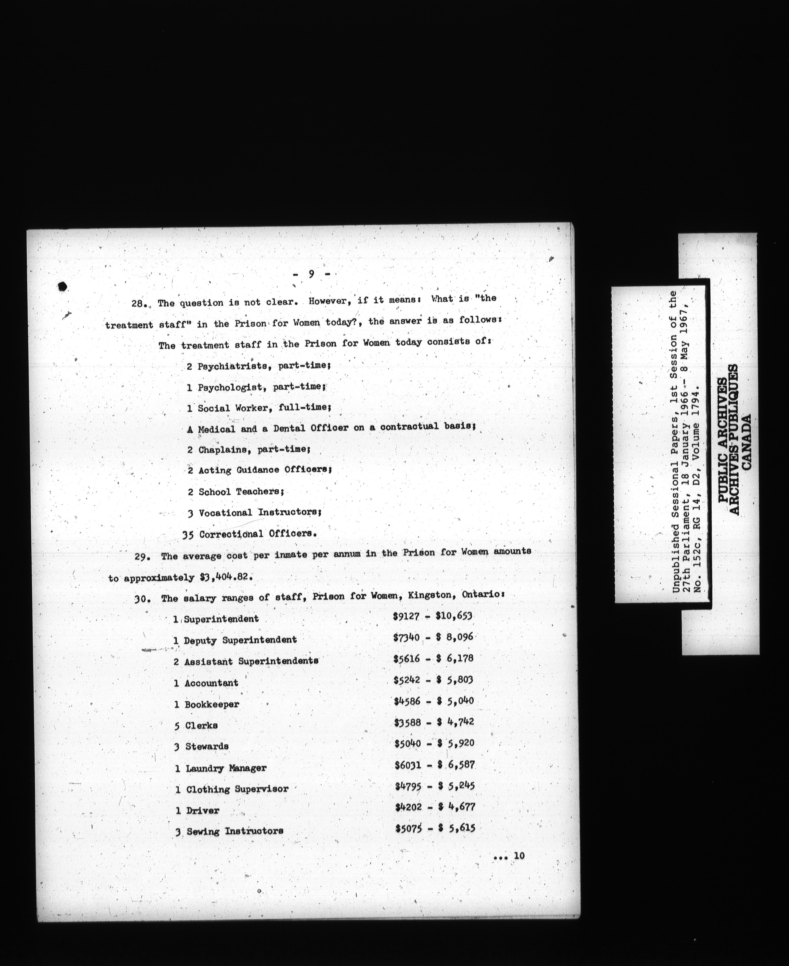 Unpublished sessional papers, 1st Session, 27th Parliament - 3718