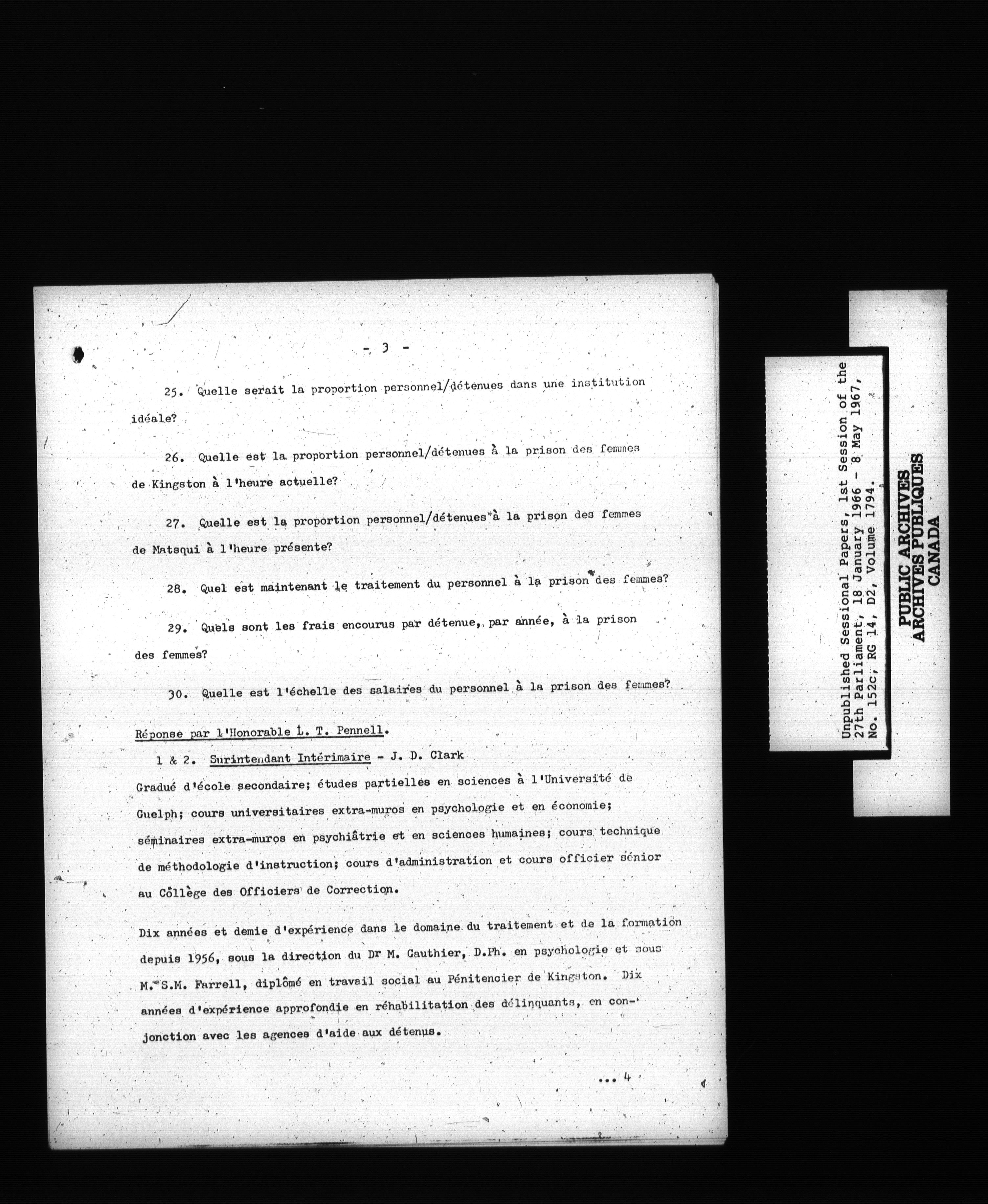 Unpublished sessional papers, 1st Session, 27th Parliament - 3718