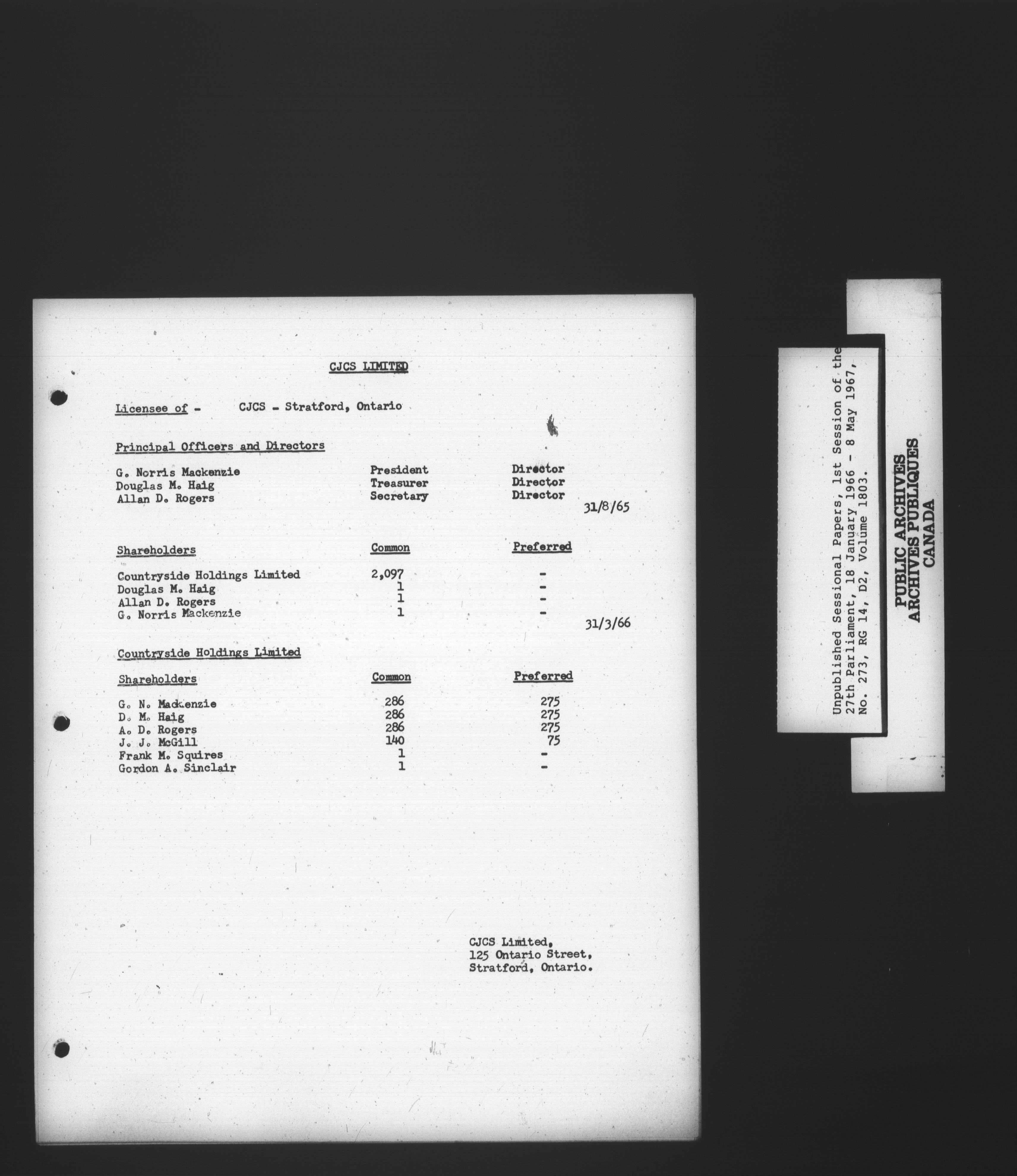 Unpublished sessional papers, 1st Session, 27th Parliament - 3724