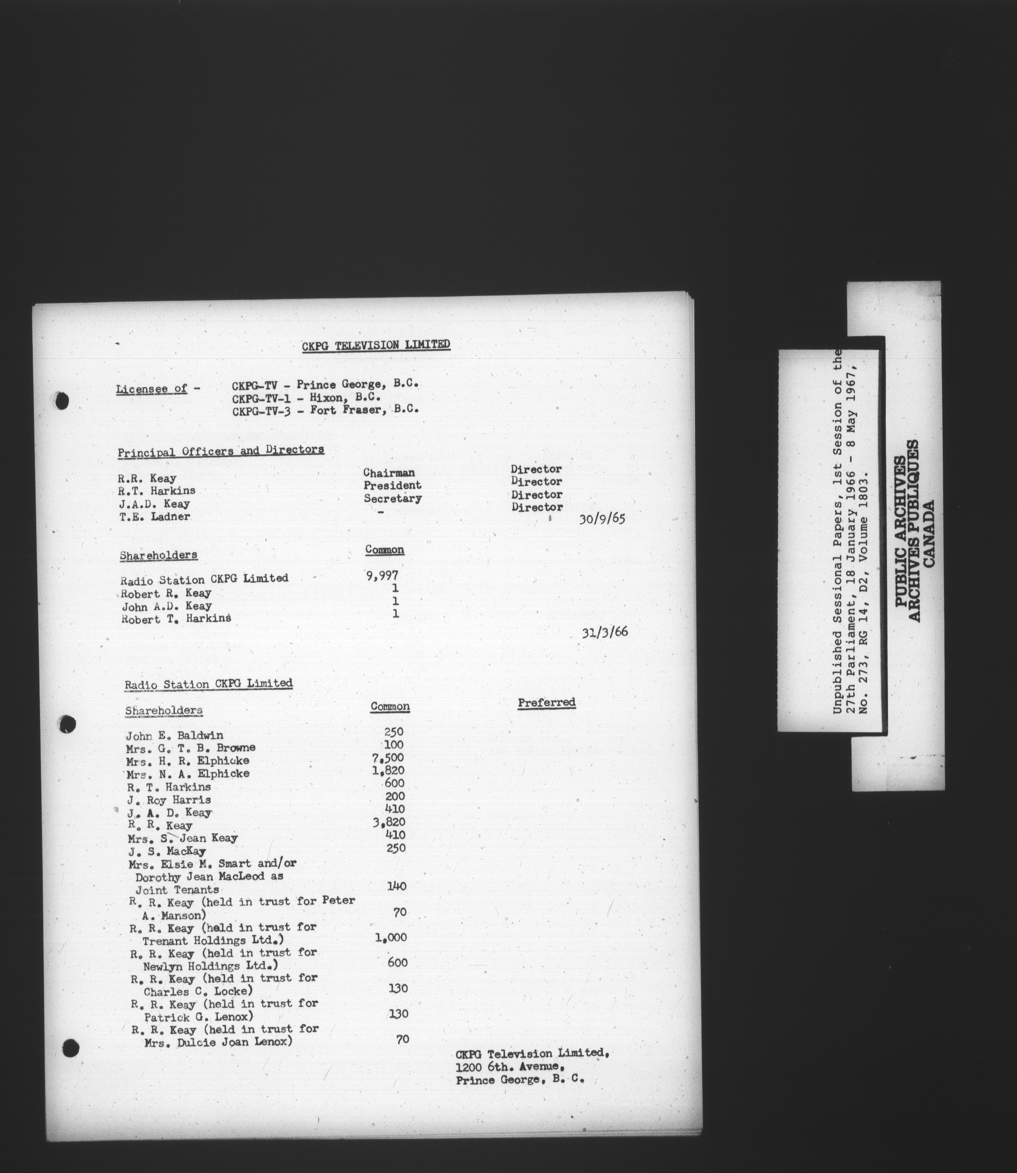 Unpublished sessional papers, 1st Session, 27th Parliament - 3724