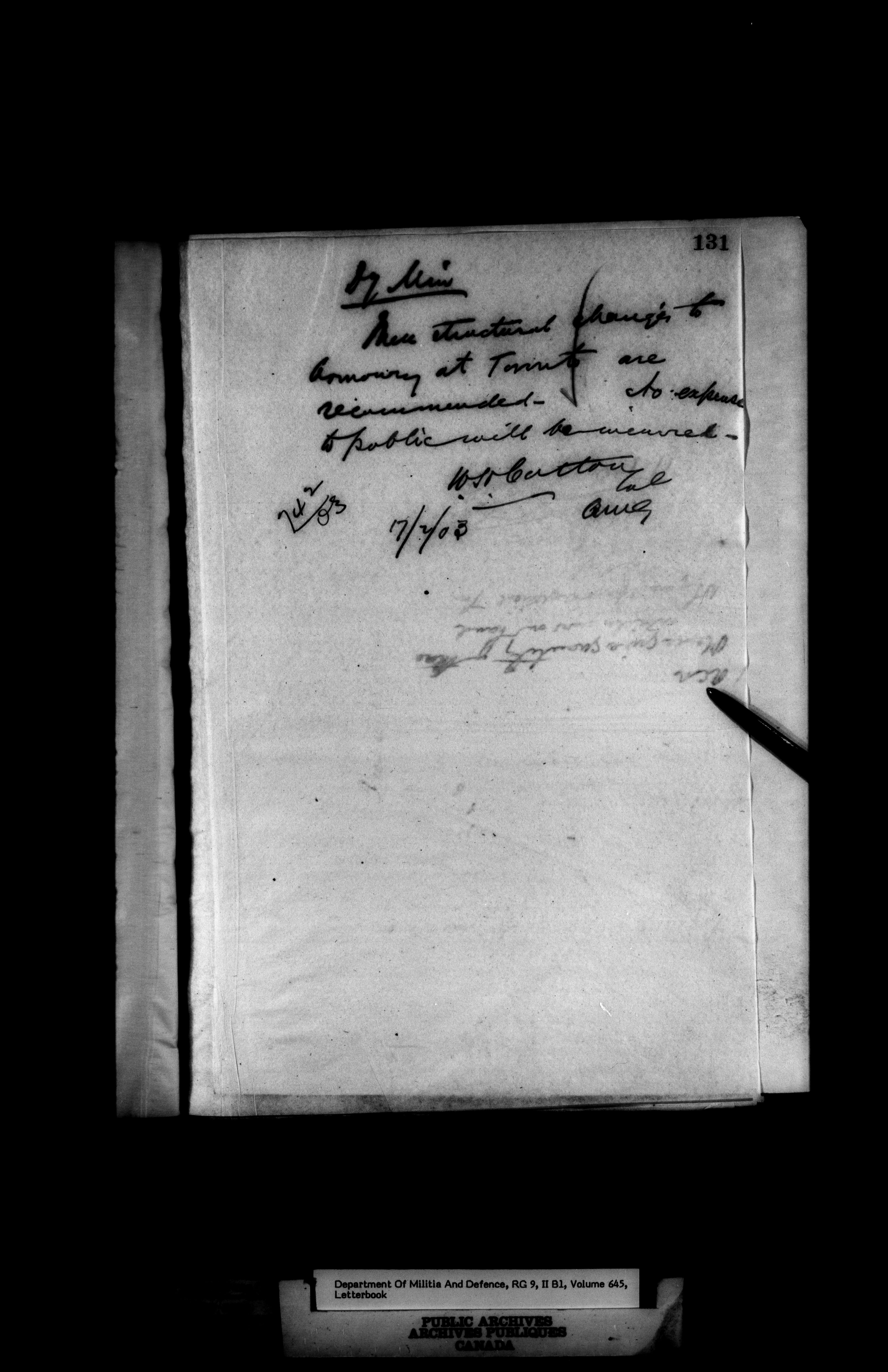 Correspondence of the General Officer Commanding (GOC) of the Canadian Militia and his predecessor, the Adjutant General - 373