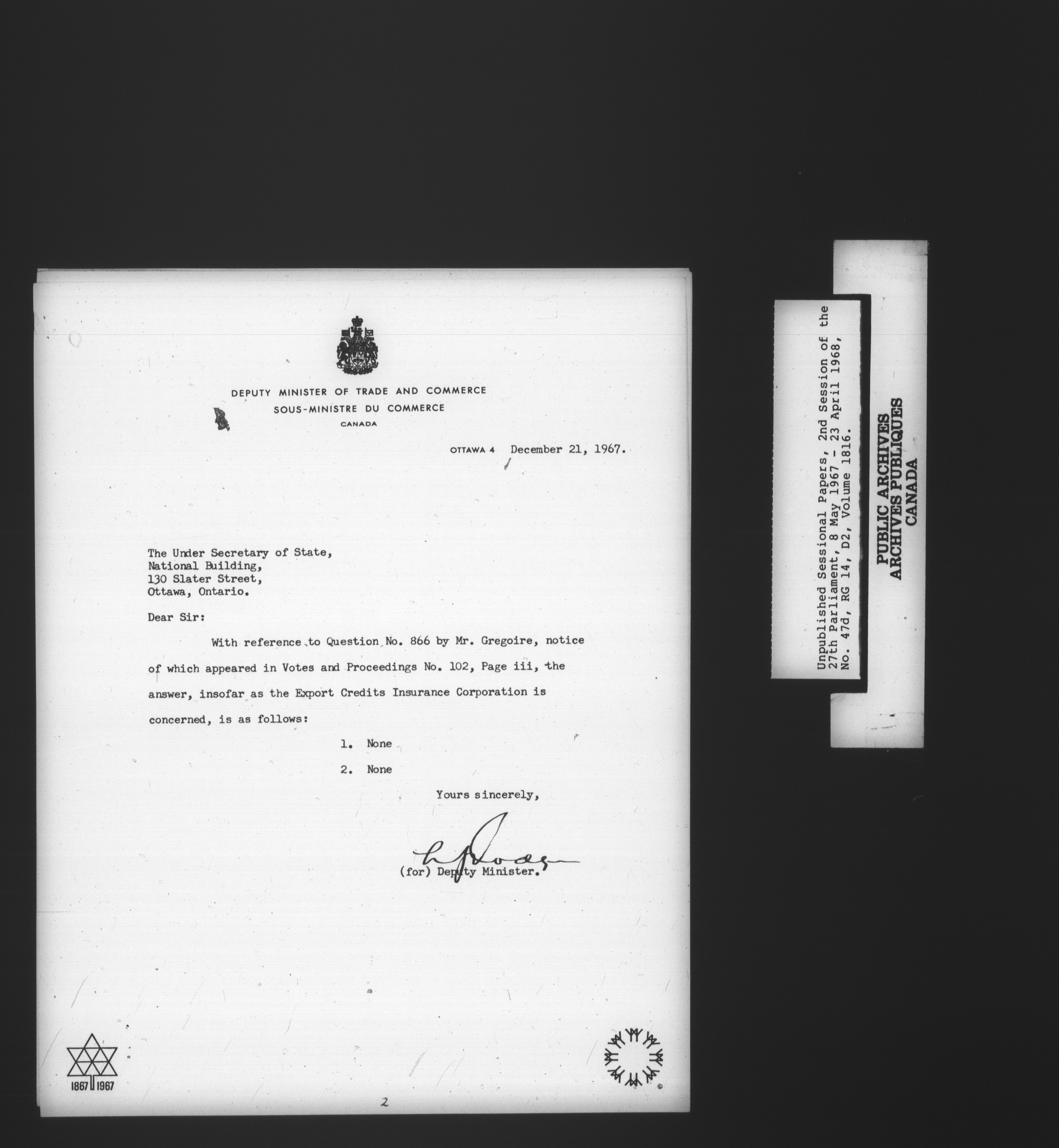 Unpublished sessional papers, 2nd Session, 27th Parliament - 3730