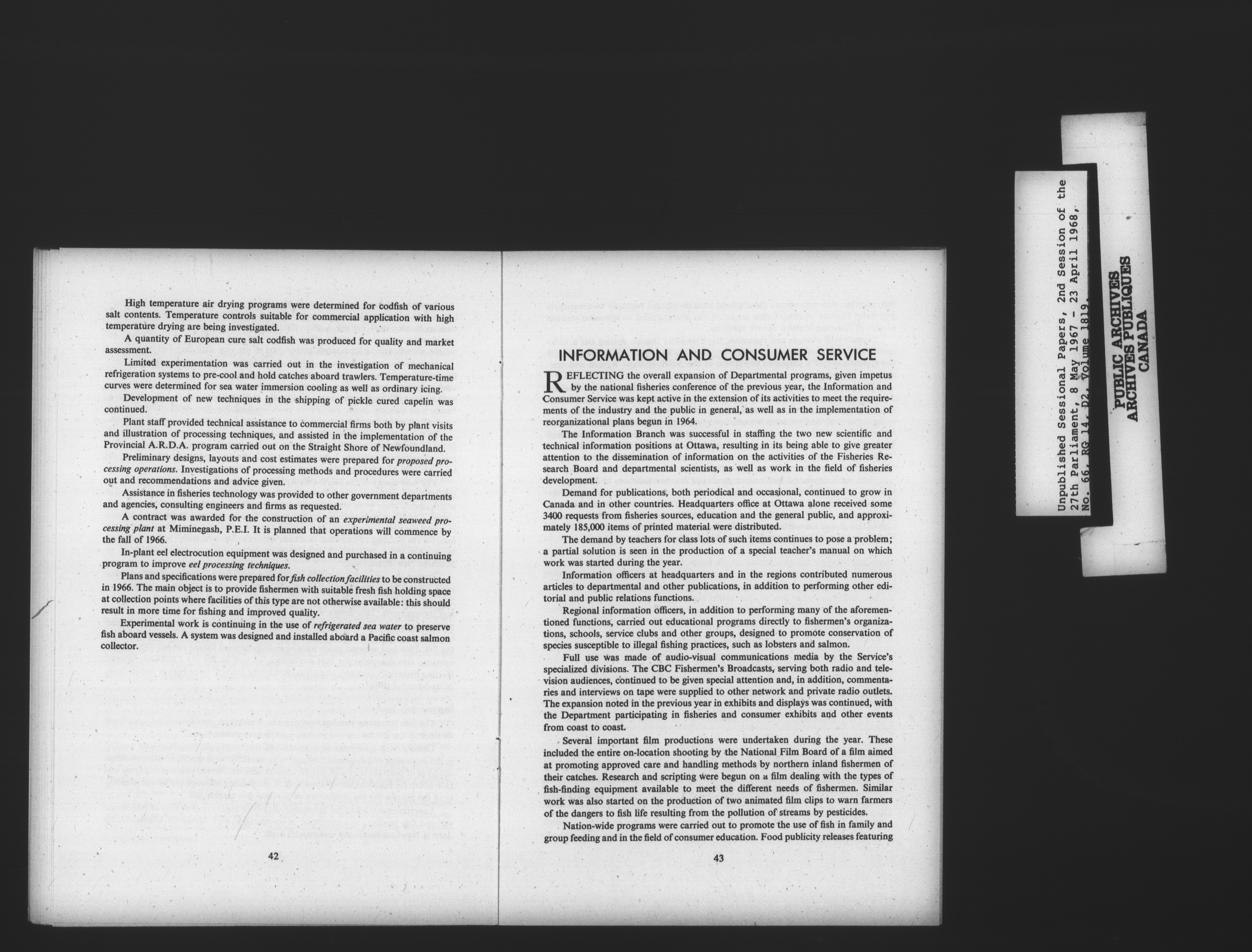 Unpublished sessional papers, 2nd Session, 27th Parliament - 3731