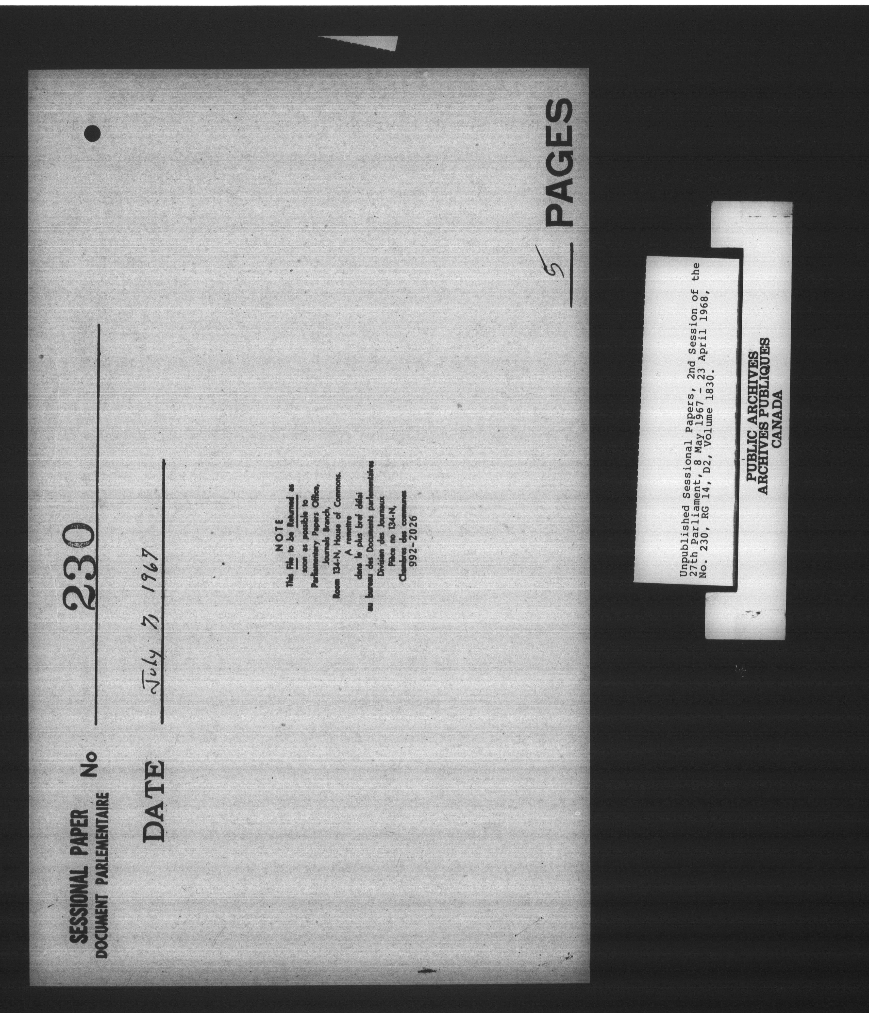 Unpublished sessional papers, 2nd Session, 27th Parliament - 3737