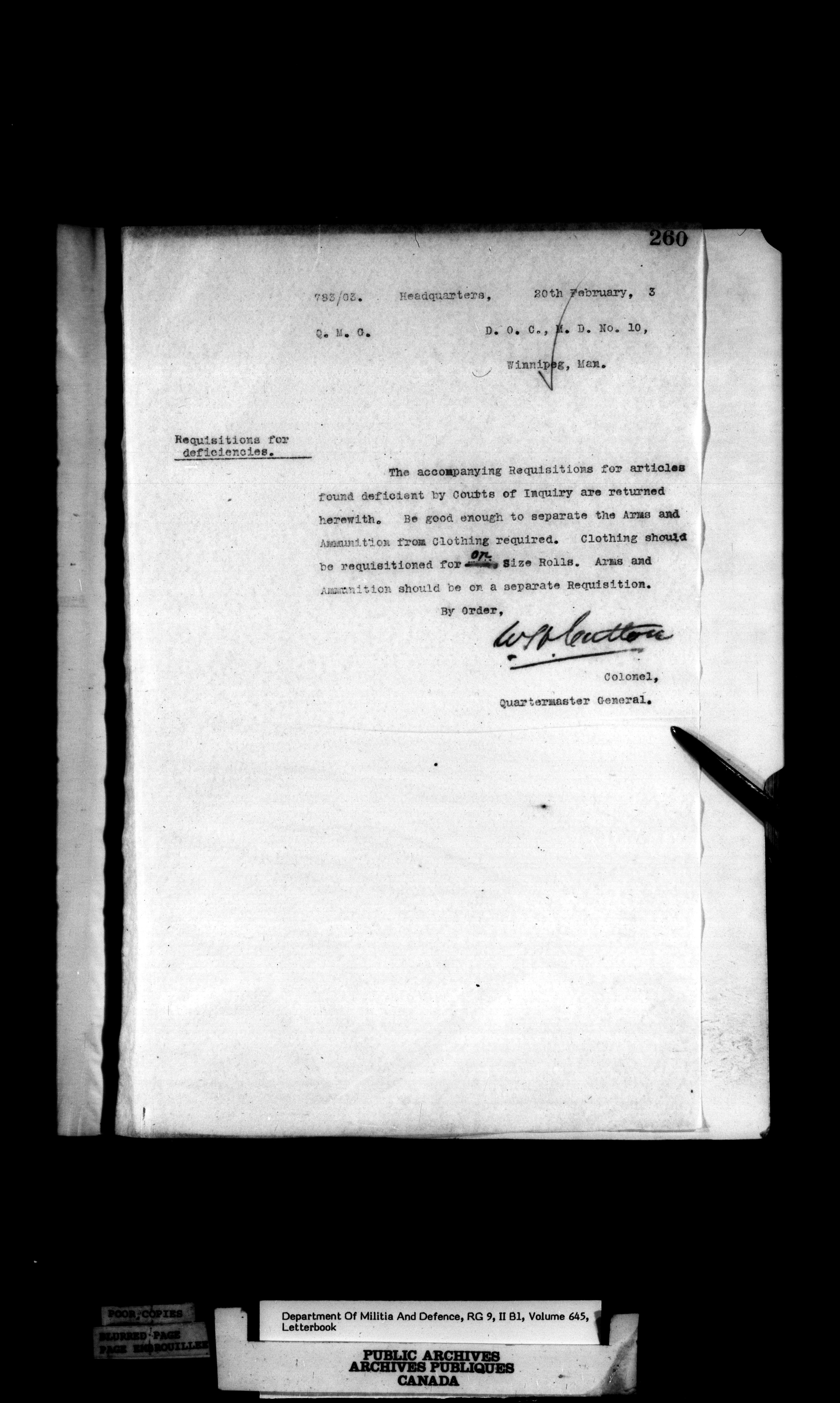 Correspondence of the General Officer Commanding (GOC) of the Canadian Militia and his predecessor, the Adjutant General - 374