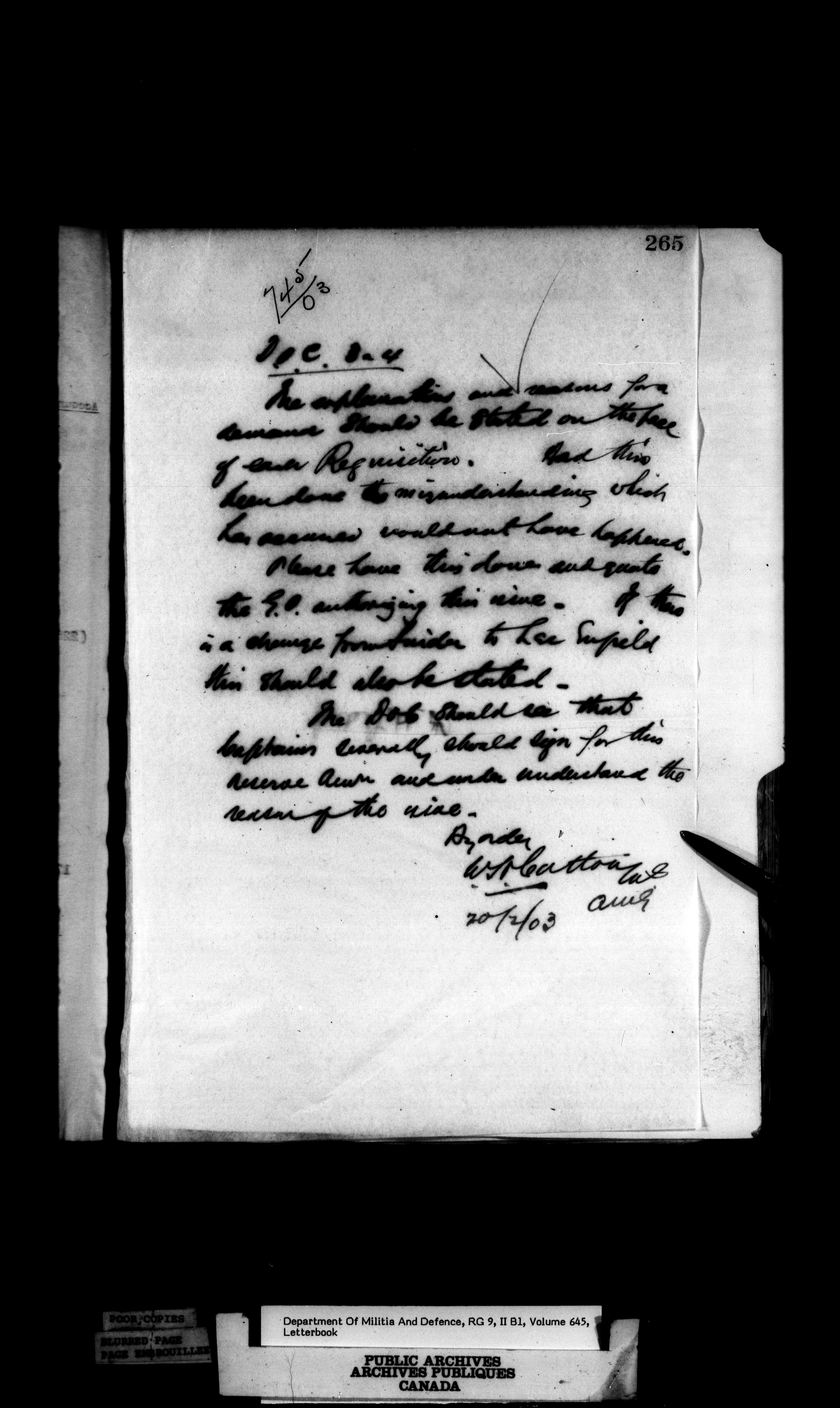 Correspondence of the General Officer Commanding (GOC) of the Canadian Militia and his predecessor, the Adjutant General - 374