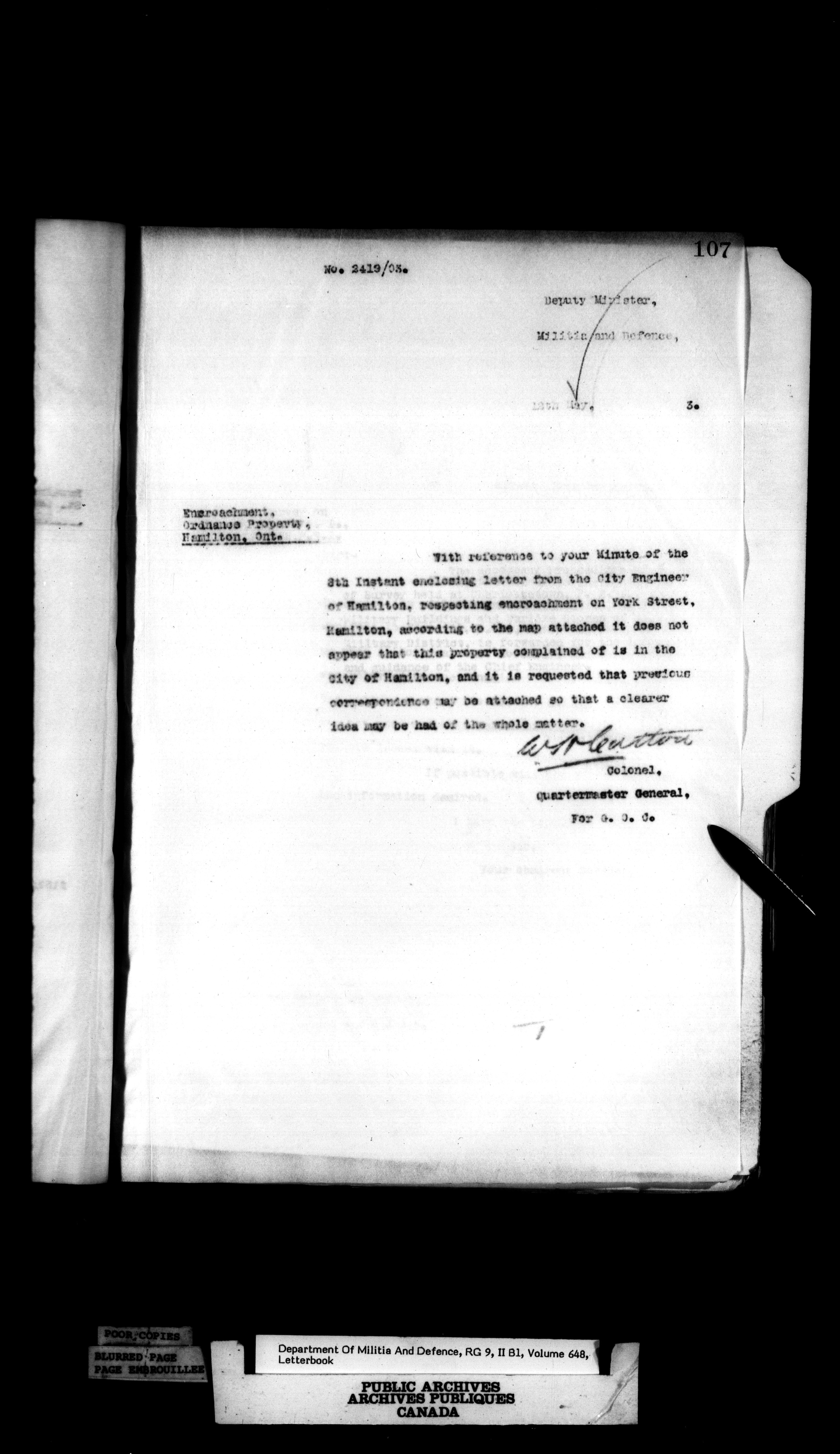 Correspondence of the General Officer Commanding (GOC) of the Canadian Militia and his predecessor, the Adjutant General - 375