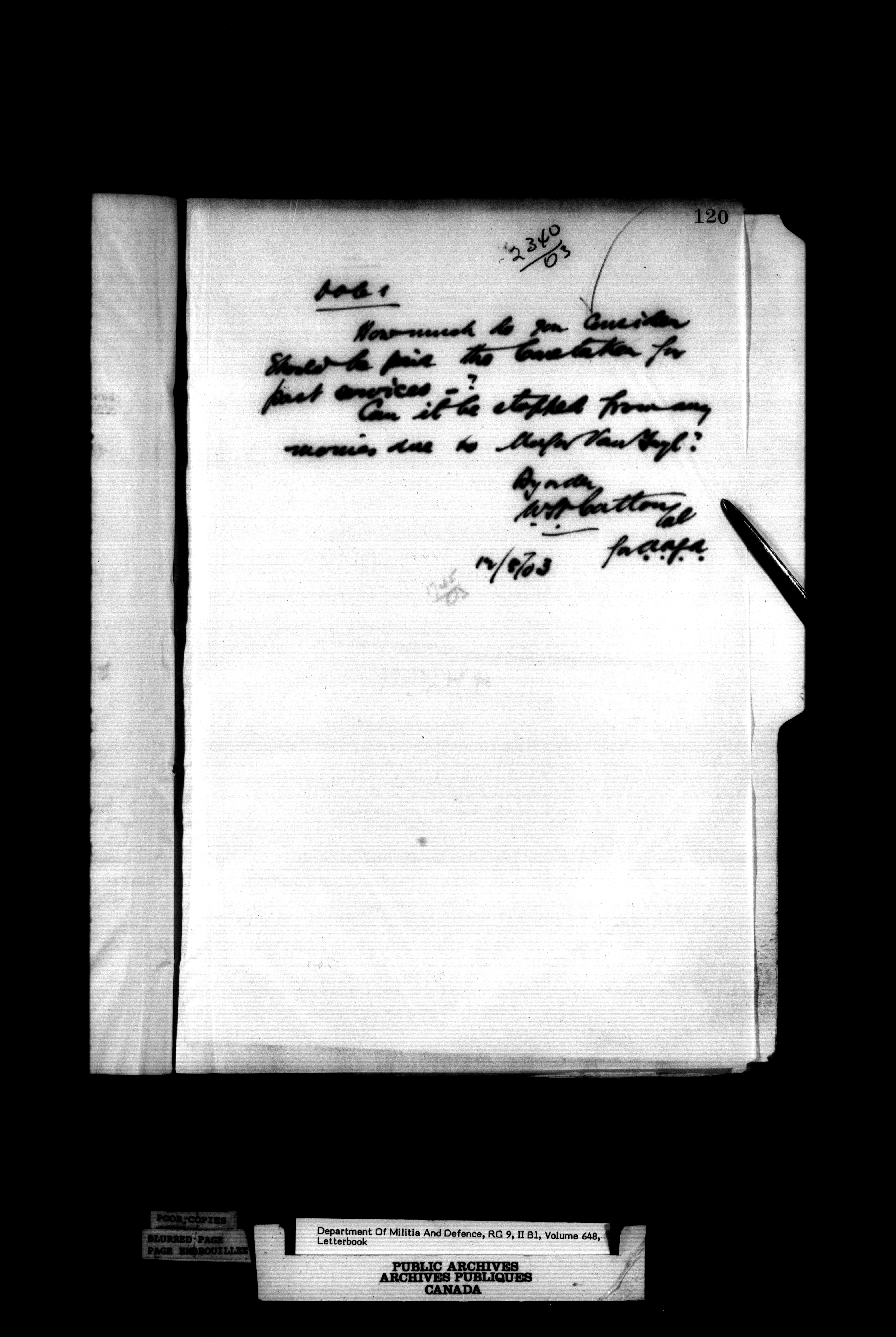 Correspondence of the General Officer Commanding (GOC) of the Canadian Militia and his predecessor, the Adjutant General - 375