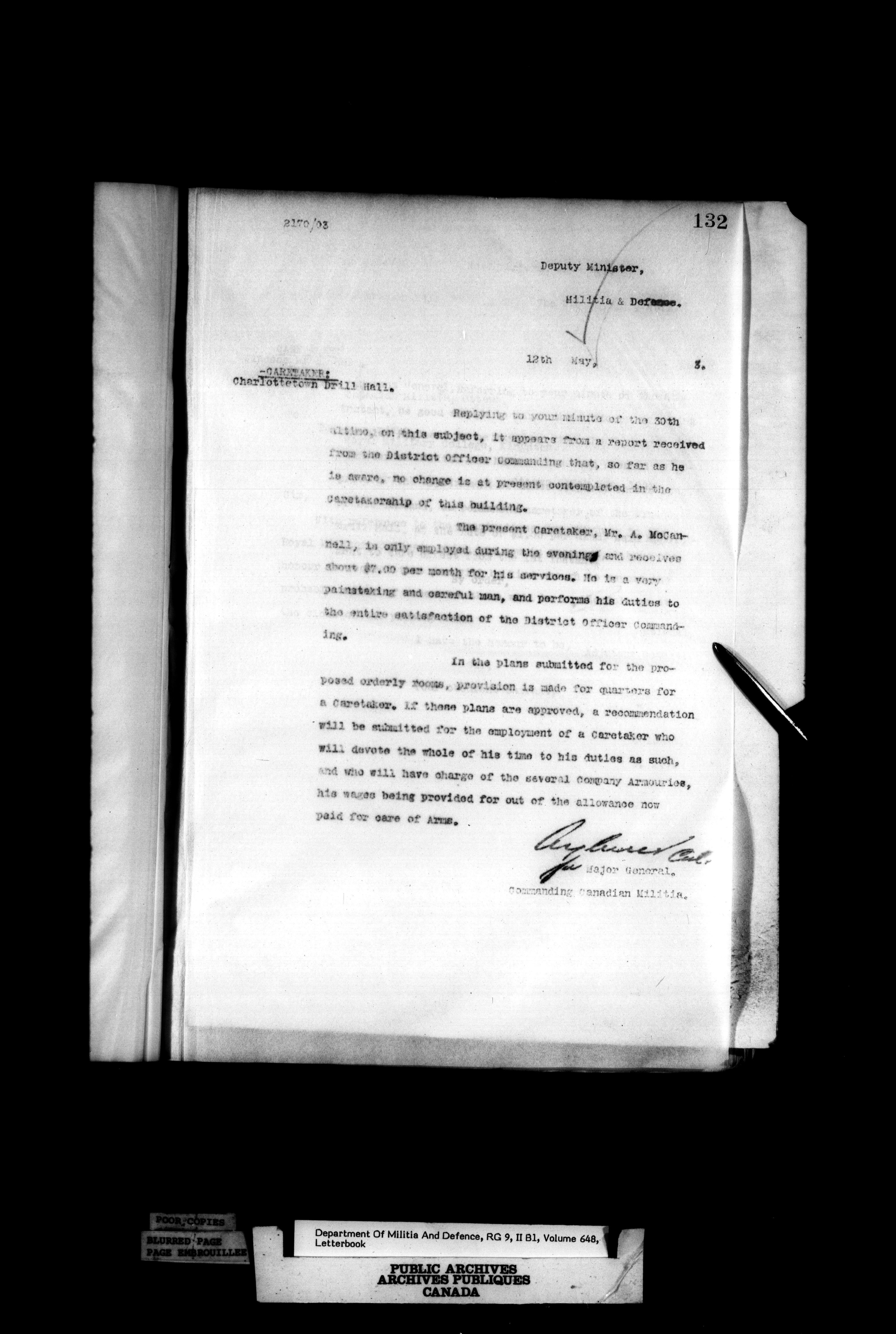 Correspondence of the General Officer Commanding (GOC) of the Canadian Militia and his predecessor, the Adjutant General - 375