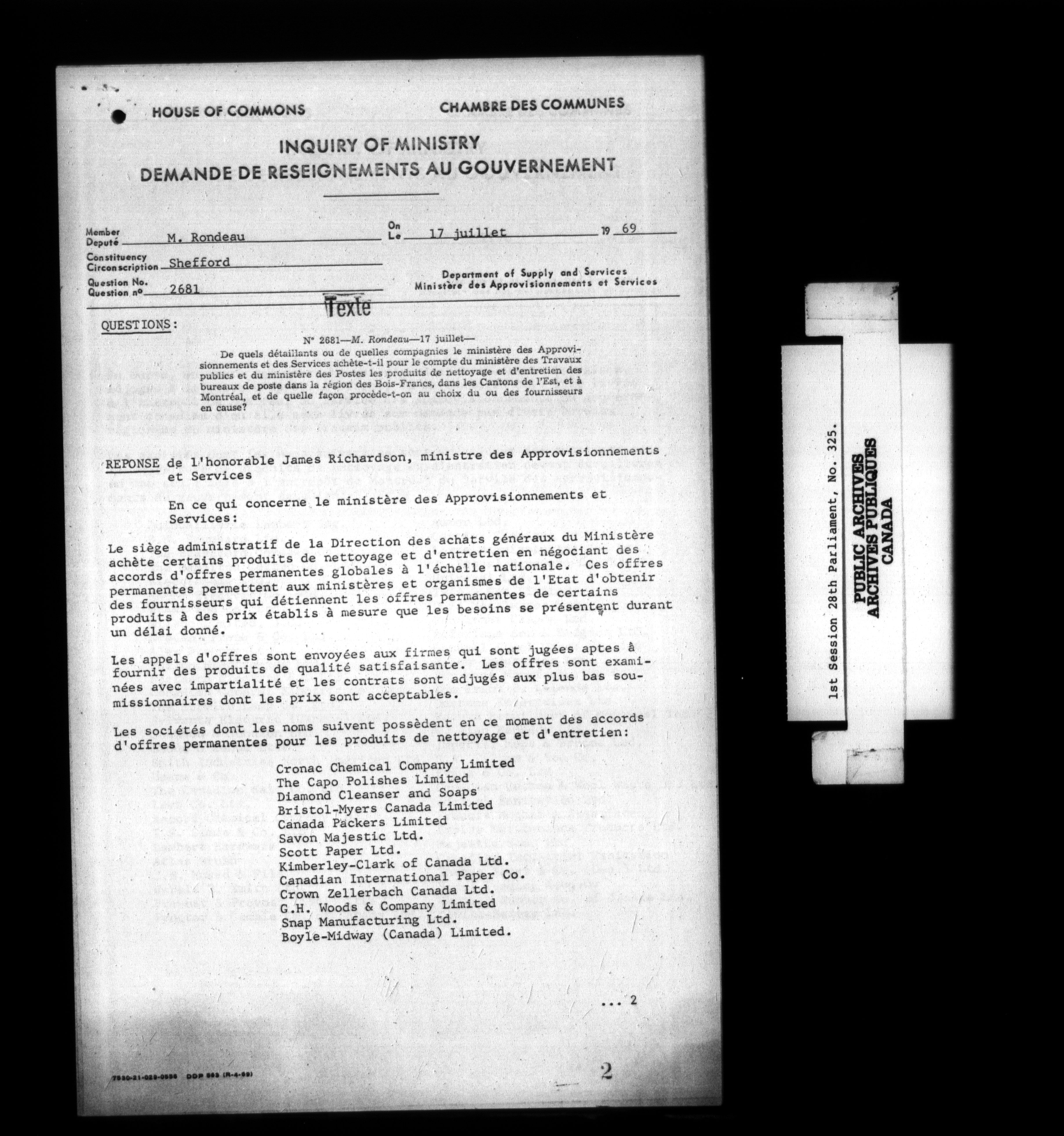 Unpublished sessional papers, 1st Session, 28th Parliament - 3761
