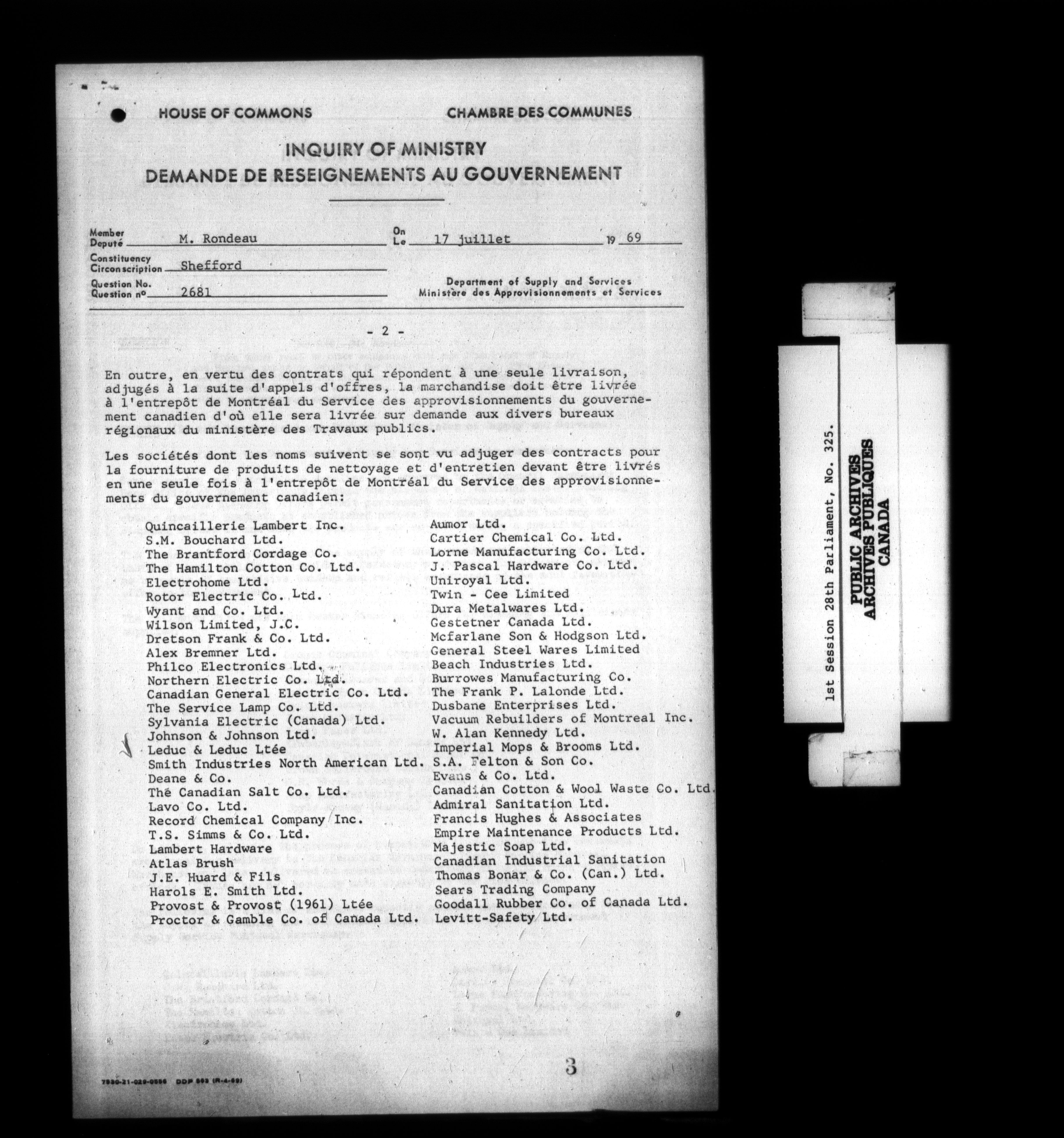 Unpublished sessional papers, 1st Session, 28th Parliament - 3761