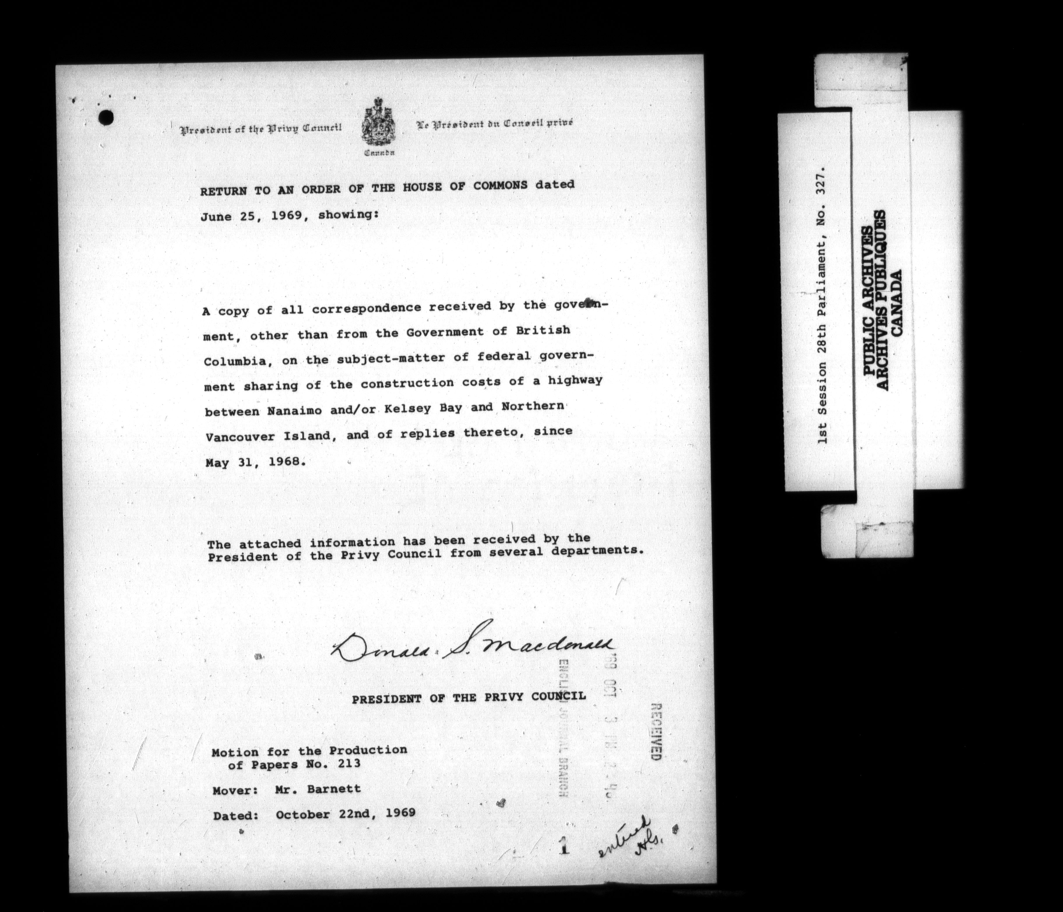 Unpublished sessional papers, 1st Session, 28th Parliament - 3761