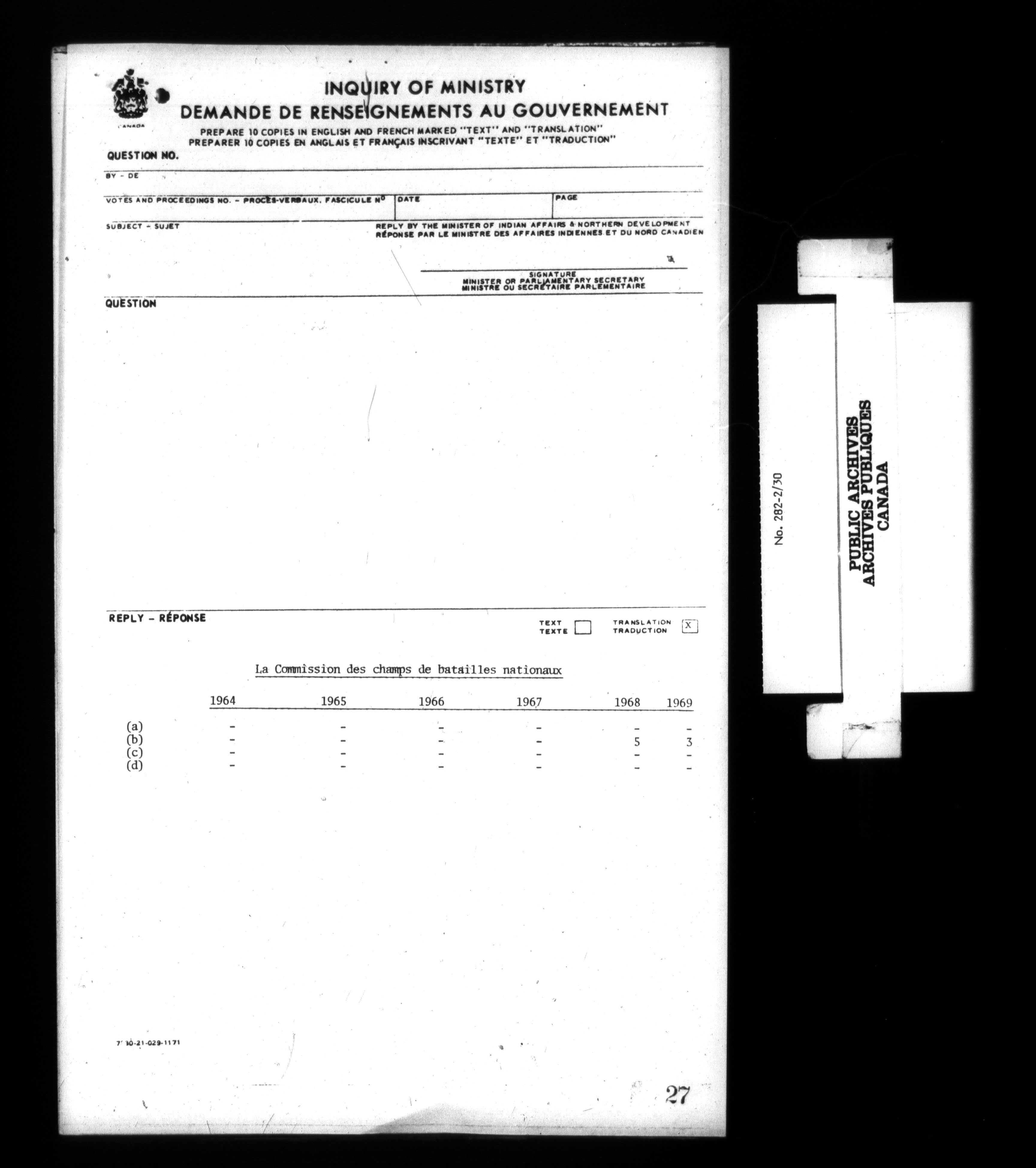 Unpublished sessional papers, 2nd Session, 28th Parliament - 3767