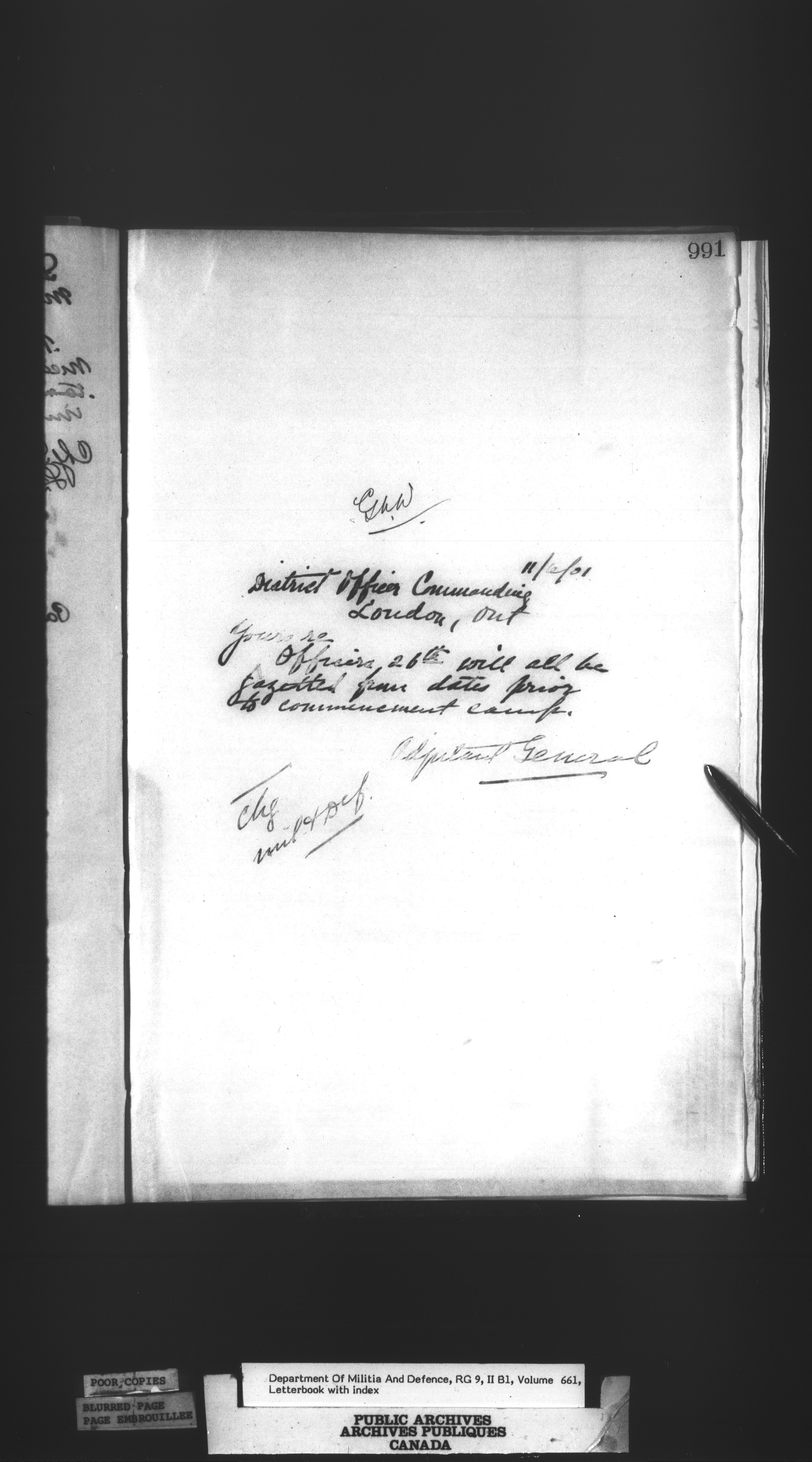 Correspondence of the General Officer Commanding (GOC) of the Canadian Militia and his predecessor, the Adjutant General - 380