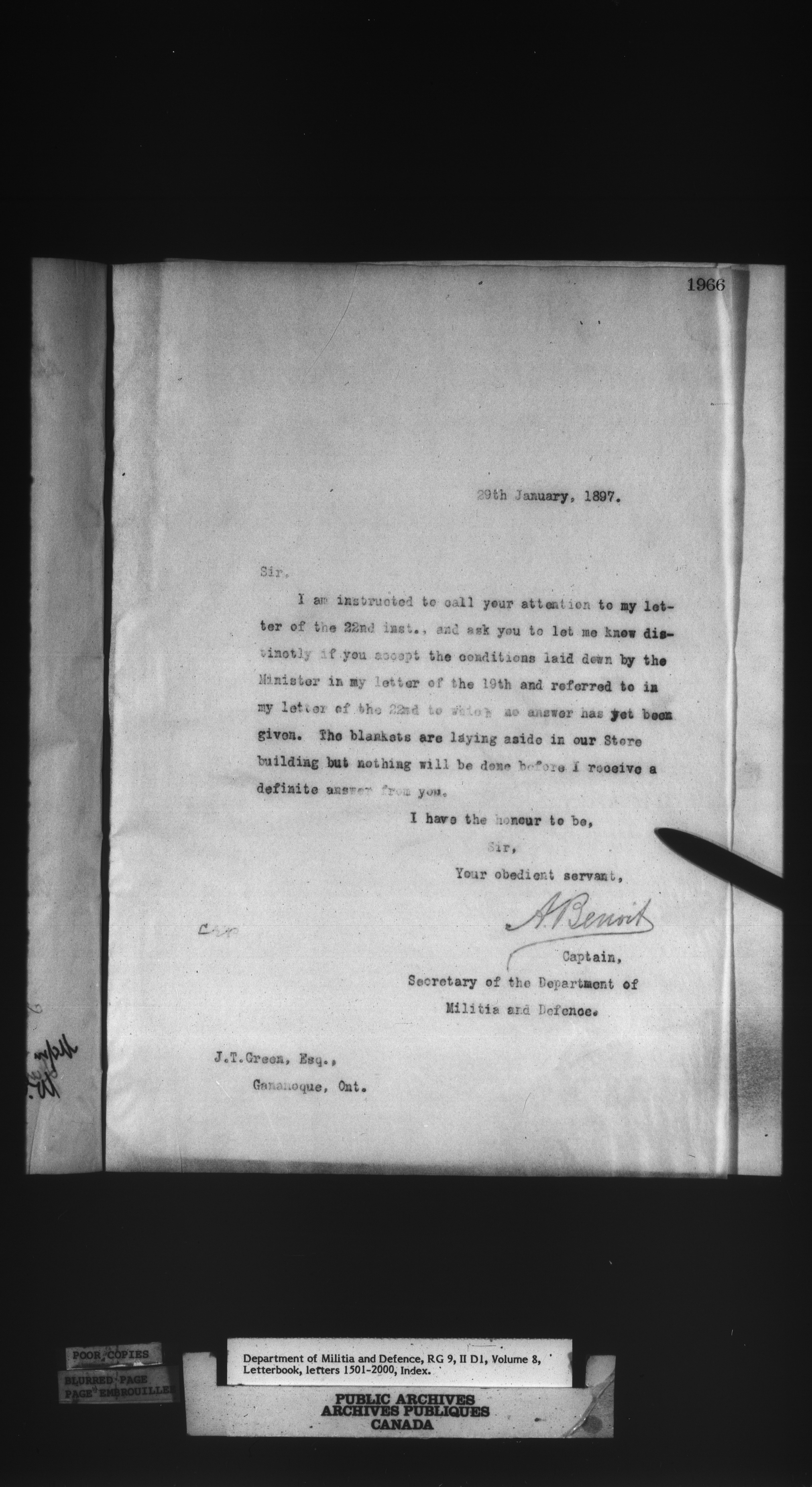 Department of Militia and Defence. Contracts Branch : Letterbooks, 1895-1912 : T-382
