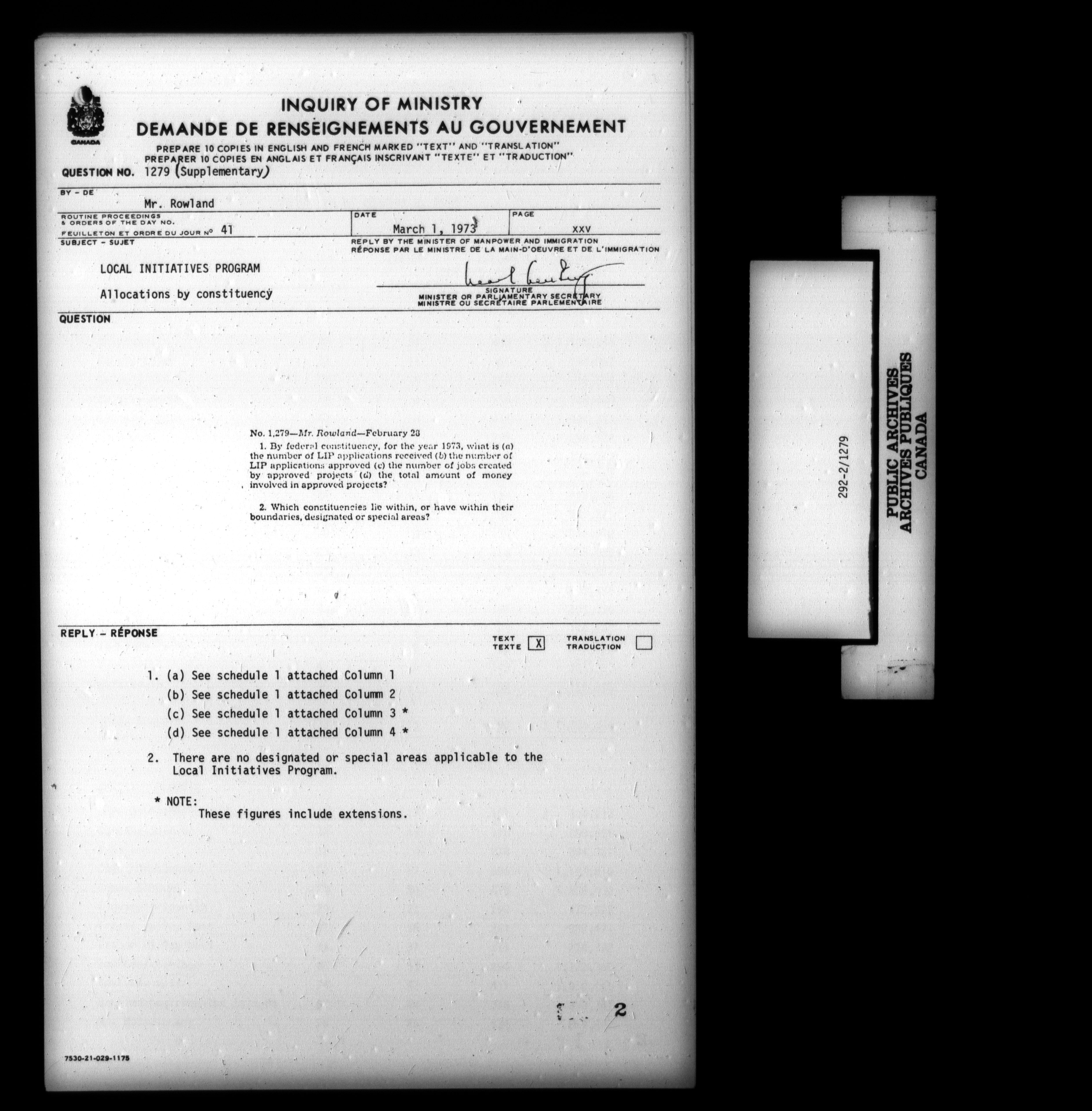 Unpublished sessional papers, 2nd Session, 29th Parliament - 3847