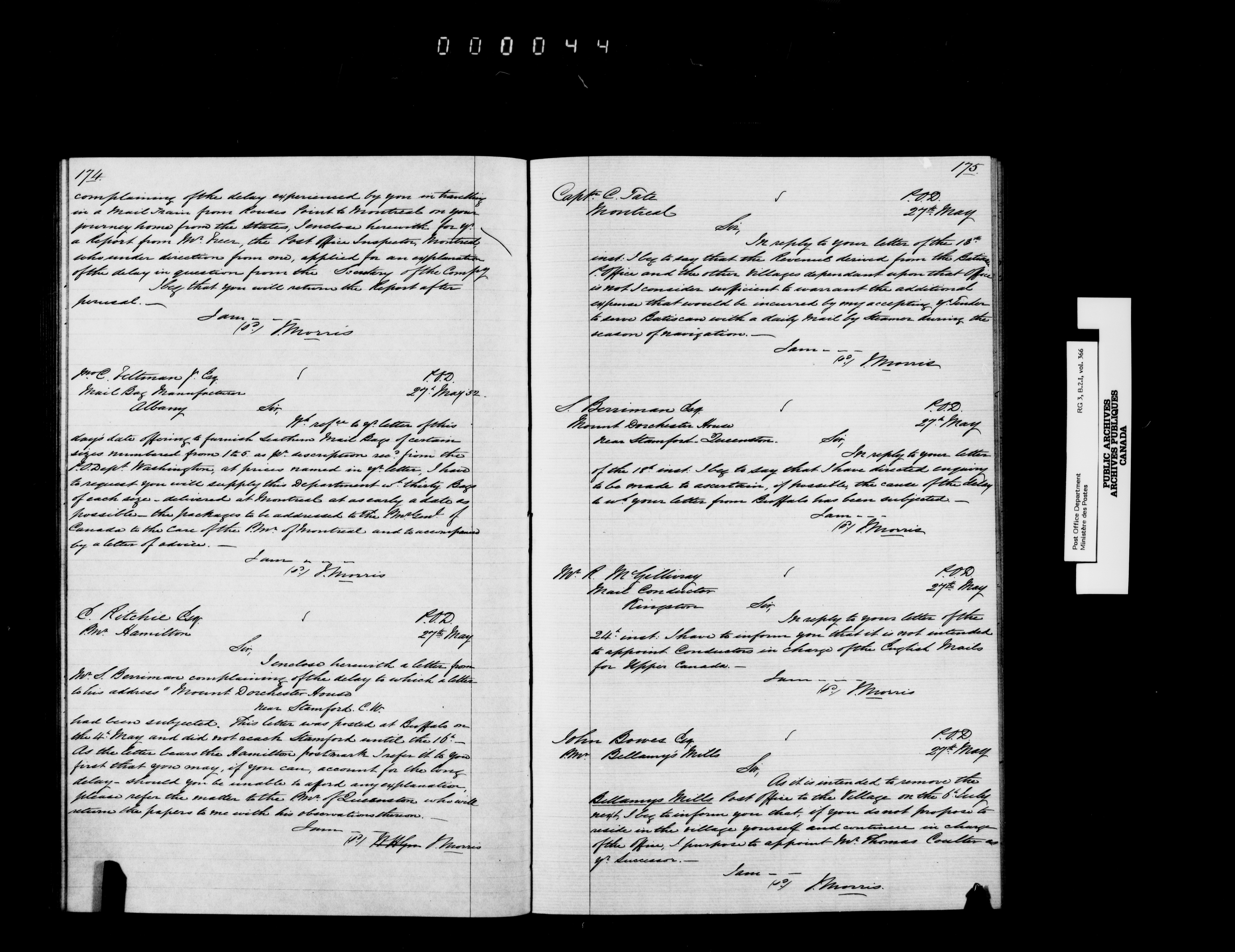 Records and general correspondence sent from the Postmaster General, 1851-1902 - 3851