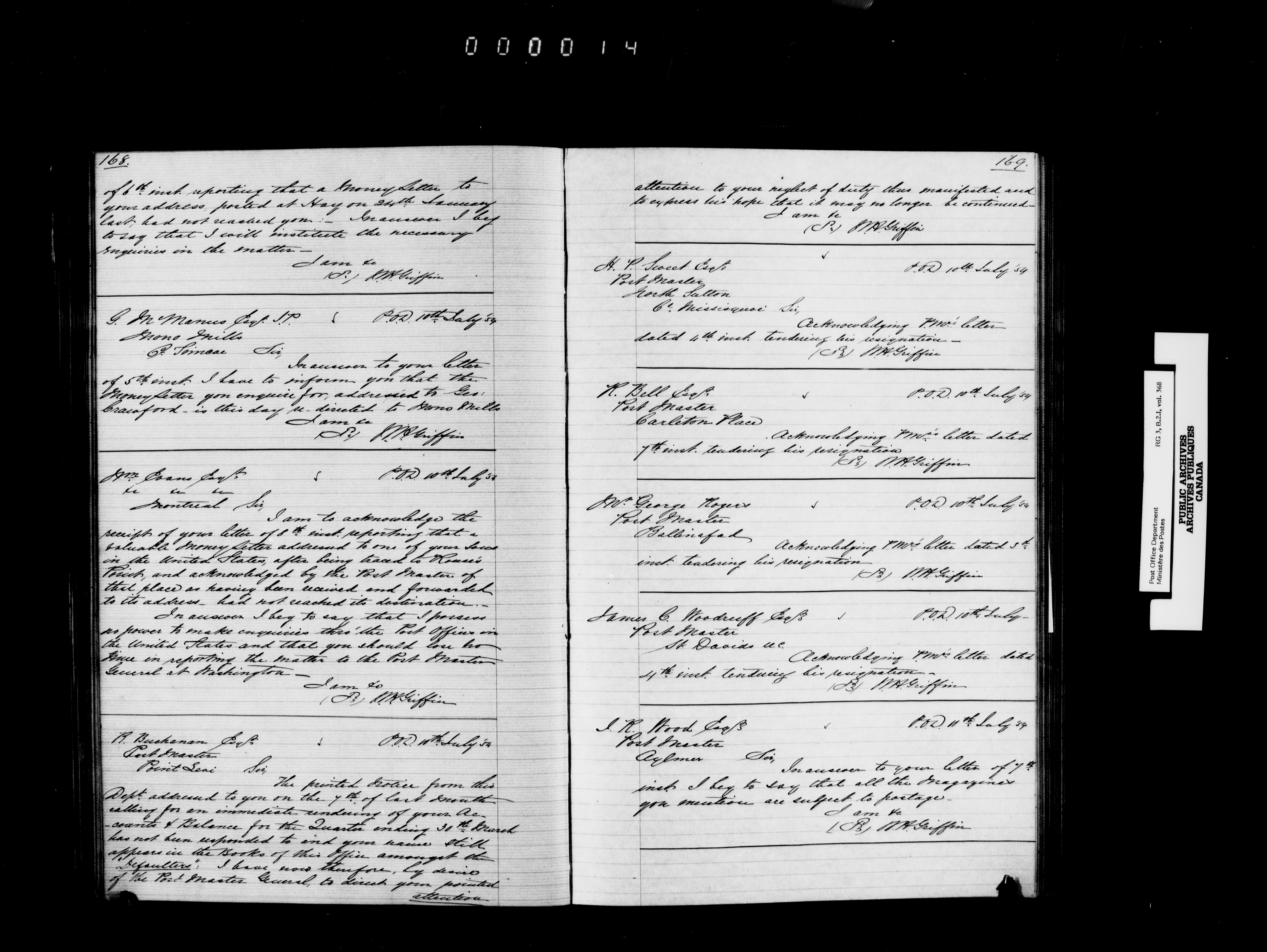 Records and general correspondence sent from the Postmaster General, 1851-1902 - 3852