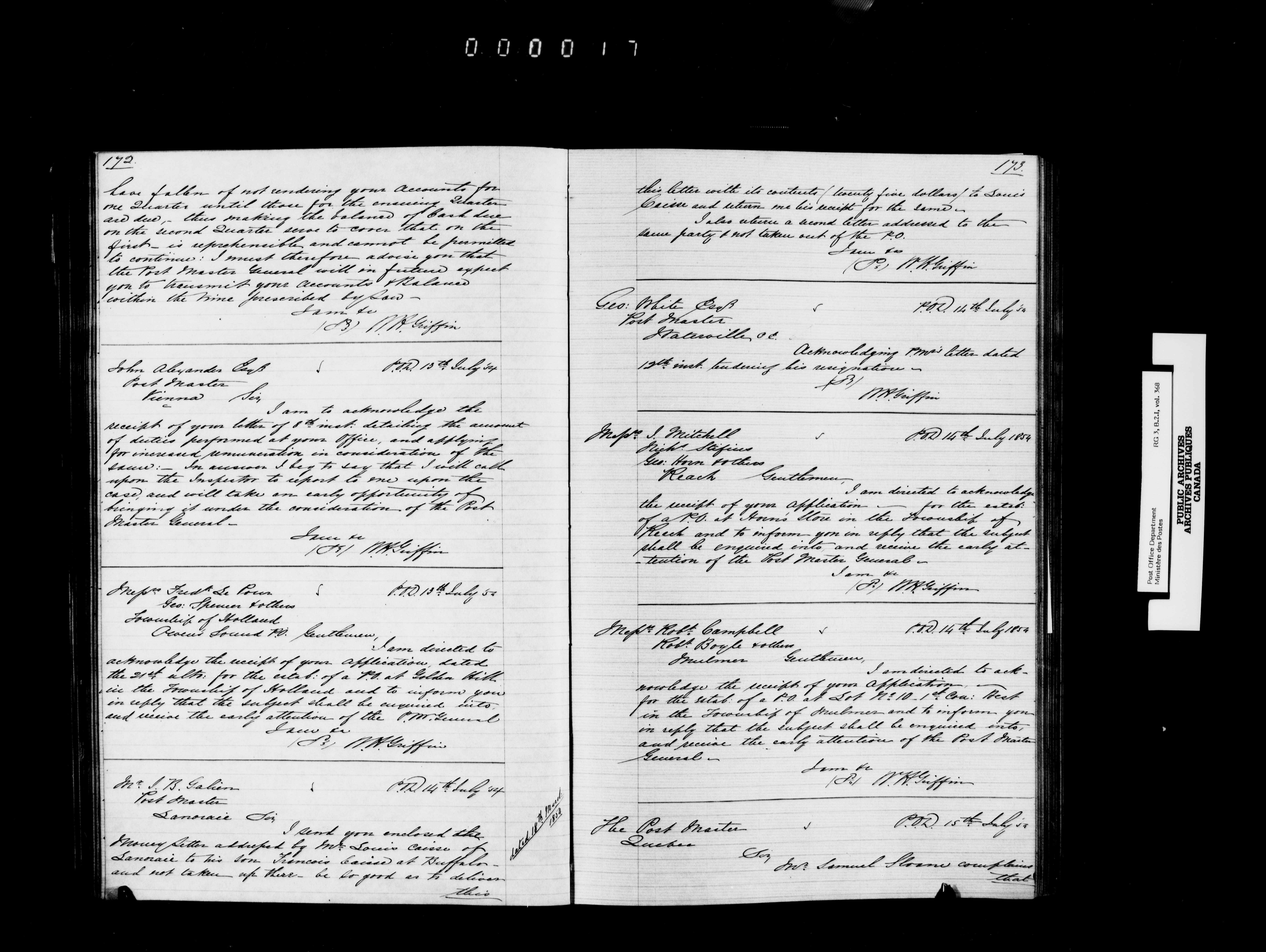 Records and general correspondence sent from the Postmaster General, 1851-1902 - 3852