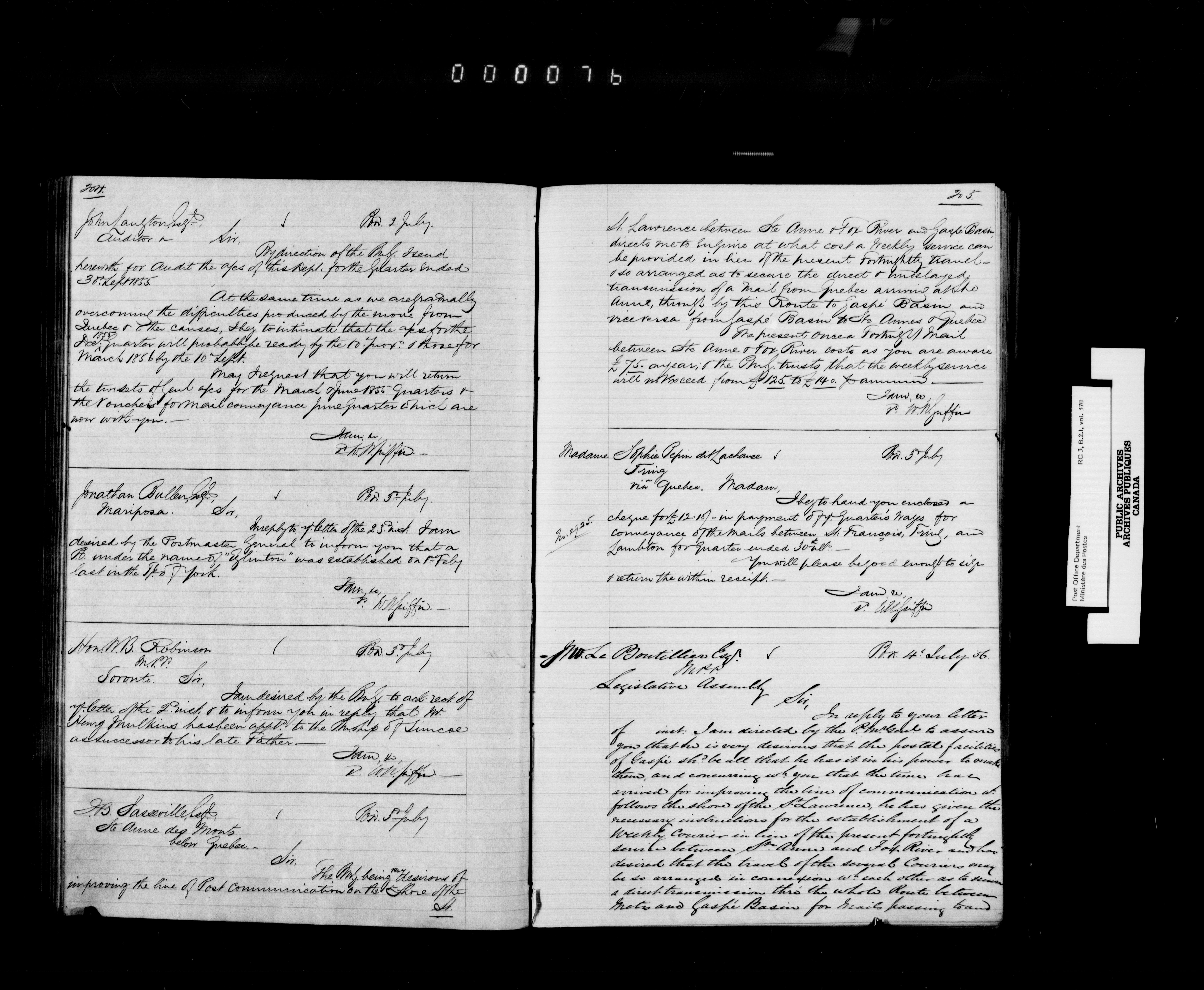Records and general correspondence sent from the Postmaster General, 1851-1902 - 3853