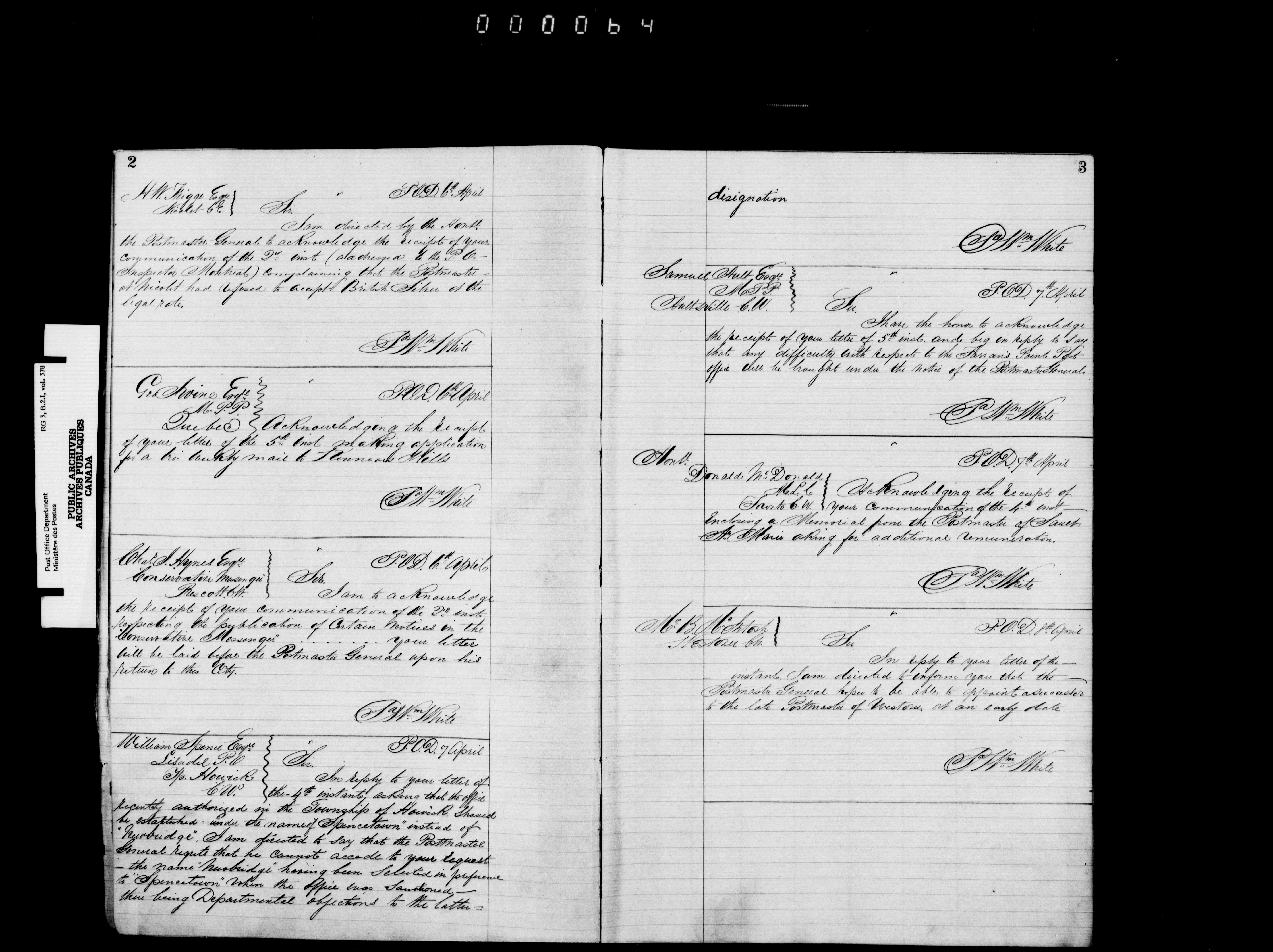 Records and general correspondence sent from the Postmaster General, 1851-1902 - 3857