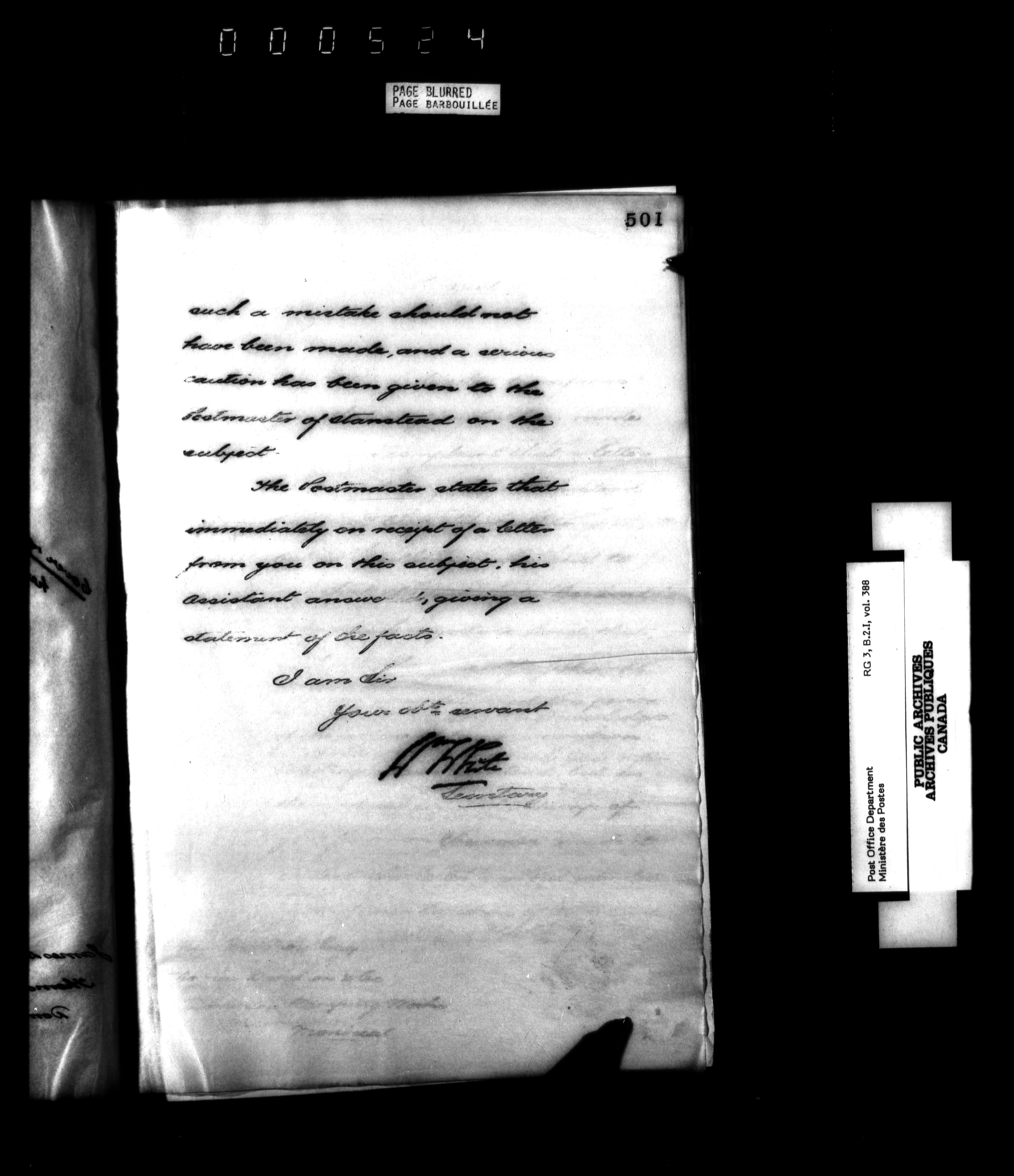 Records and general correspondence sent from the Postmaster General, 1851-1902 - 3865