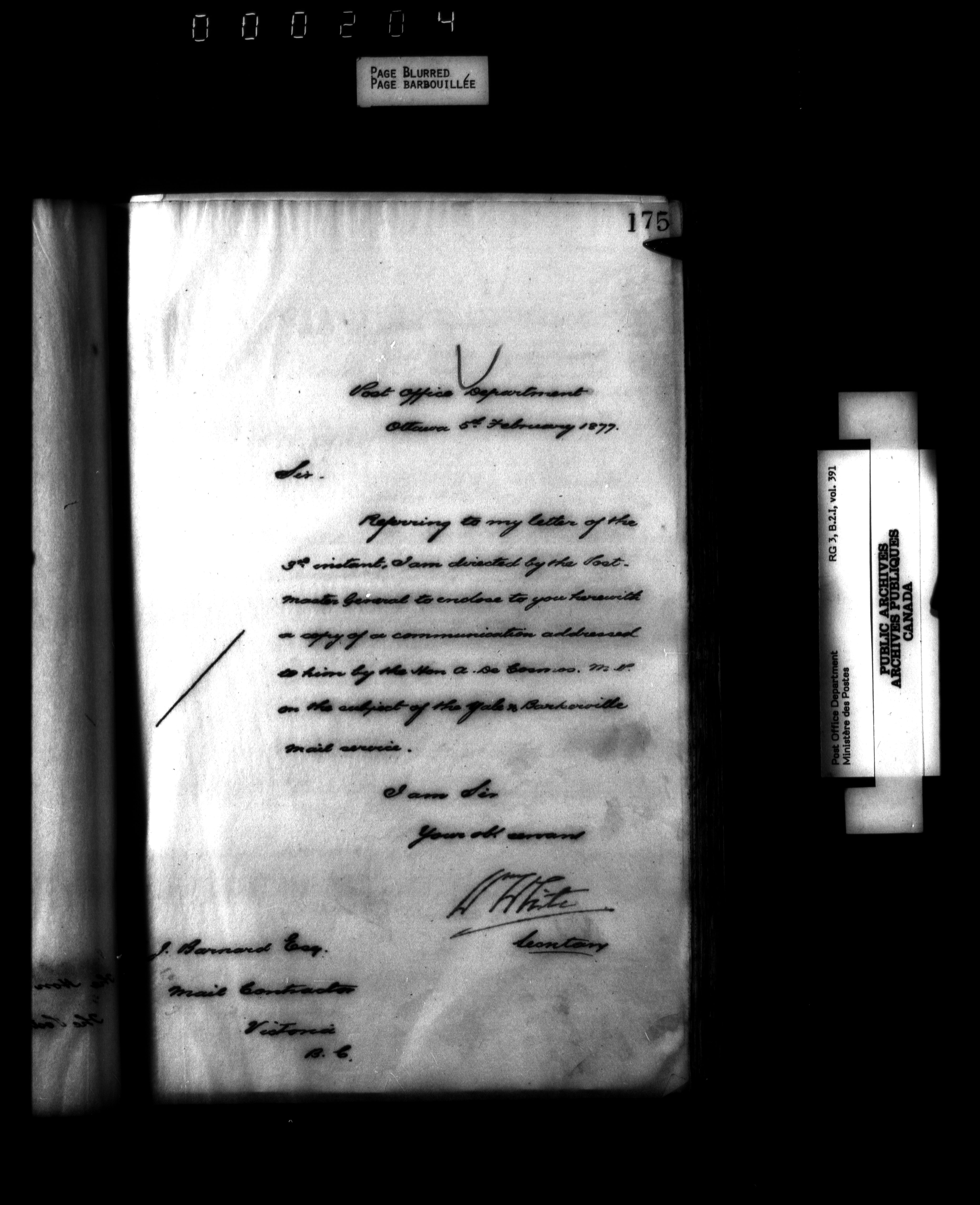 Records and general correspondence sent from the Postmaster General, 1851-1902 - 3867