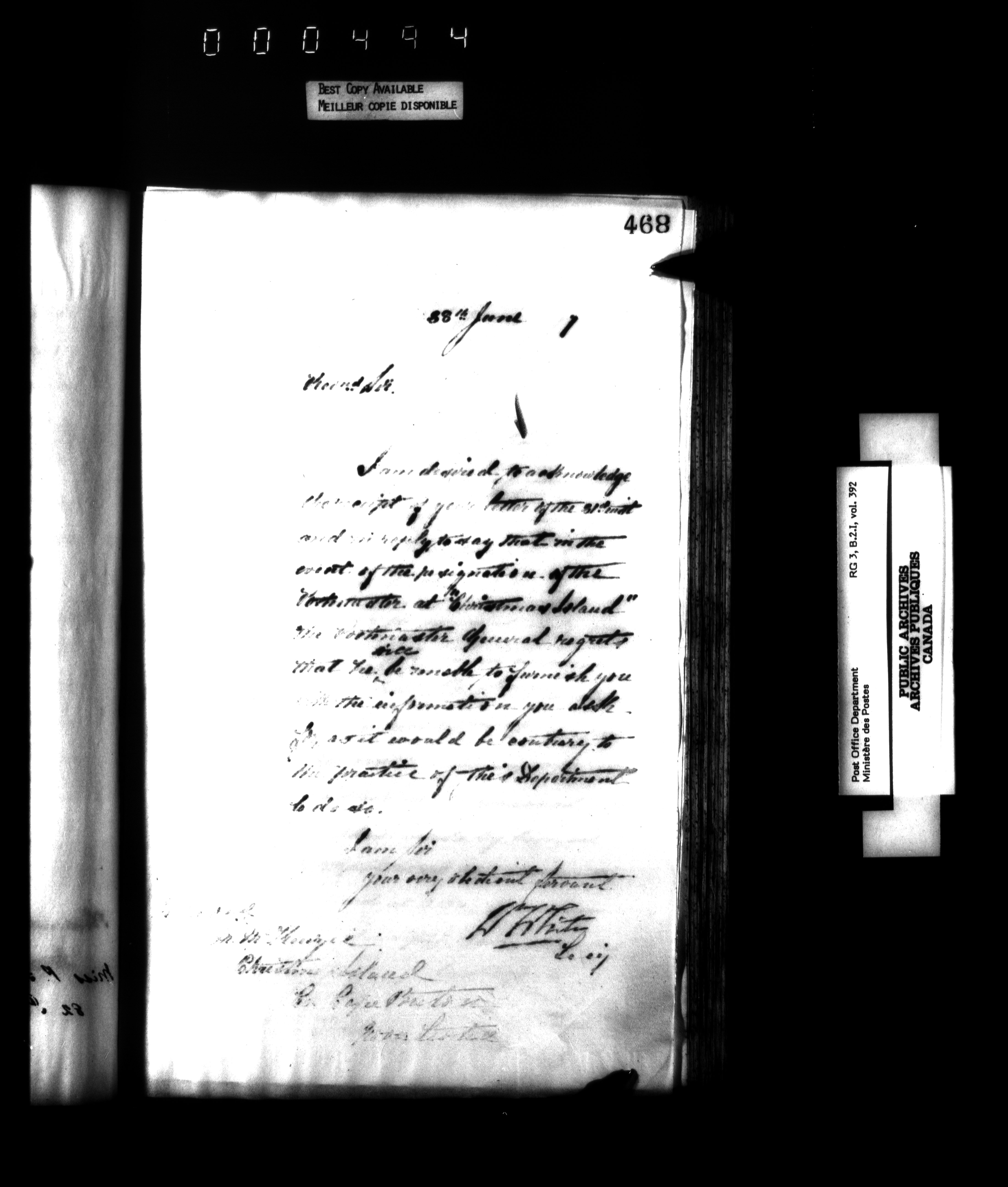 Records and general correspondence sent from the Postmaster General, 1851-1902 - 3868