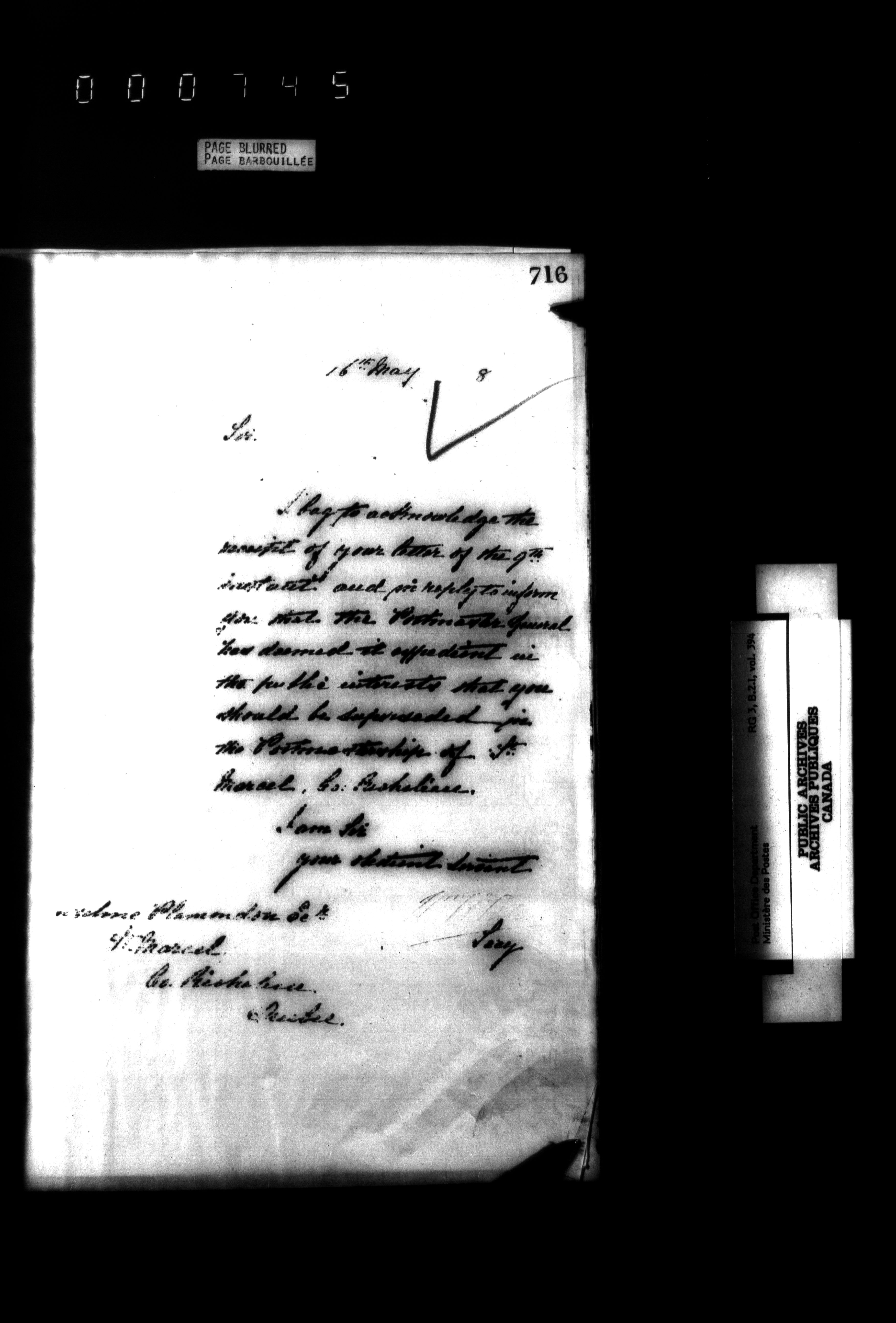Records and general correspondence sent from the Postmaster General, 1851-1902 - 3870