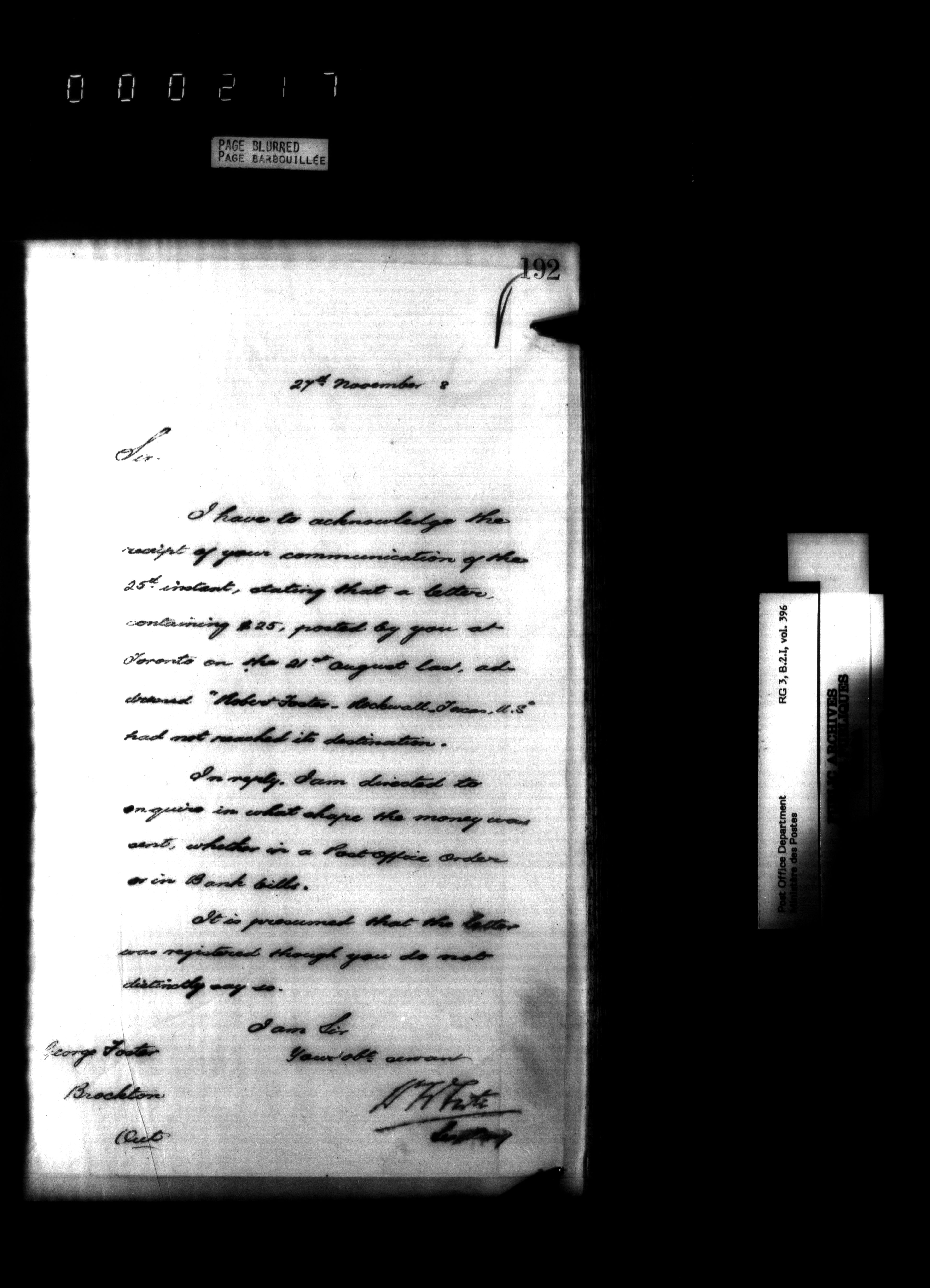 Records and general correspondence sent from the Postmaster General, 1851-1902 - 3871