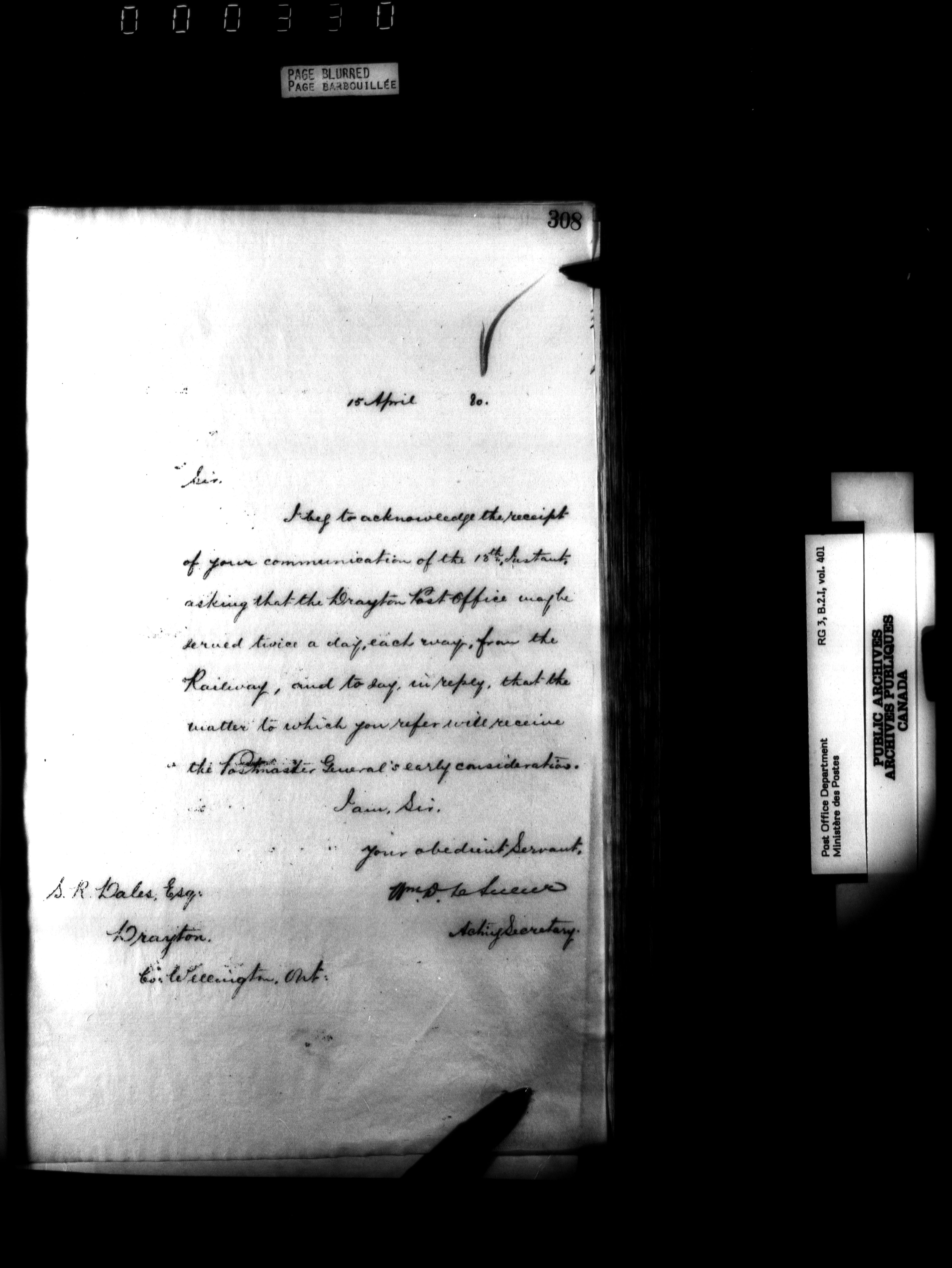 Records and general correspondence sent from the Postmaster General, 1851-1902 - 3874