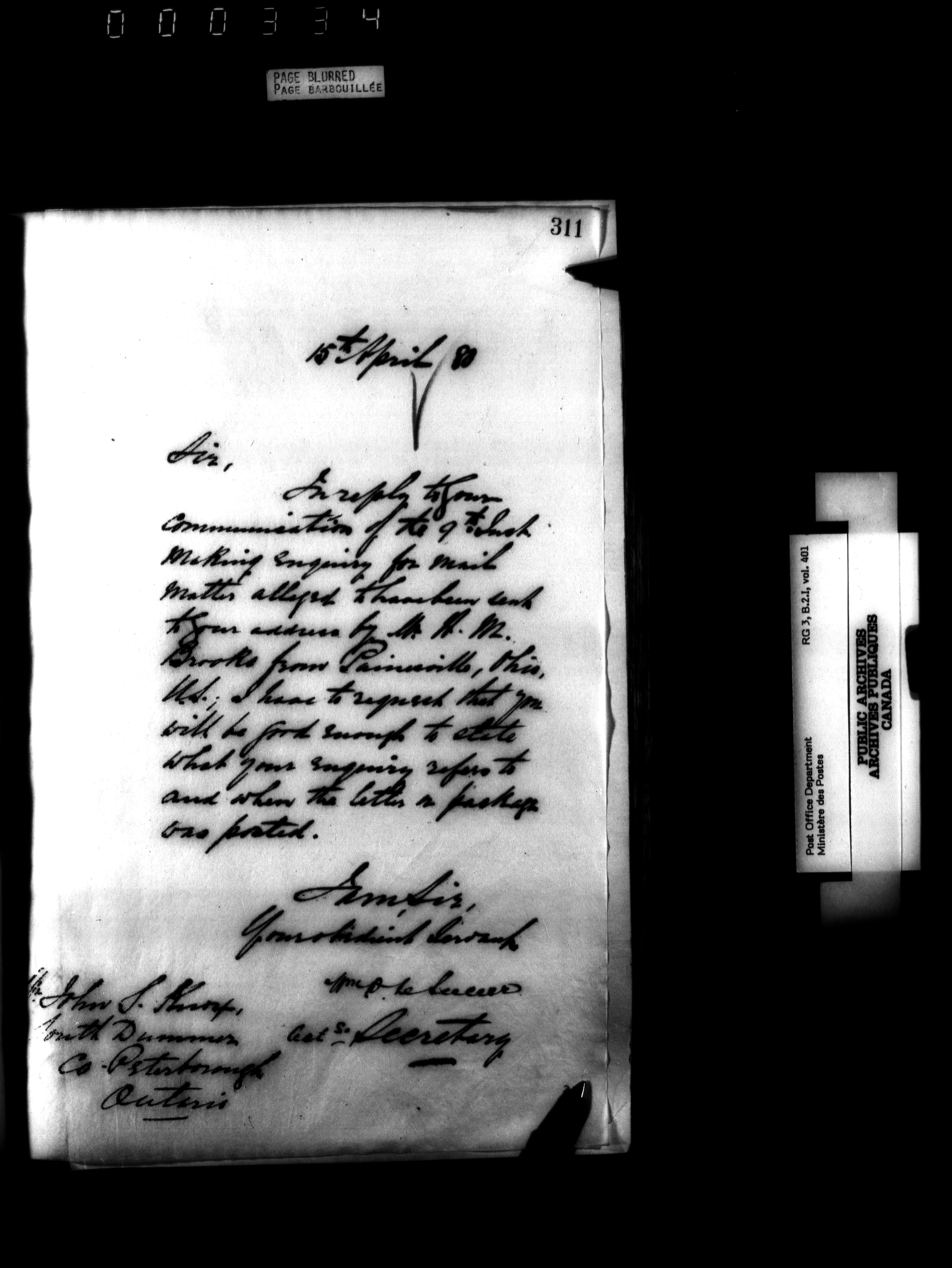 Records and general correspondence sent from the Postmaster General, 1851-1902 - 3874