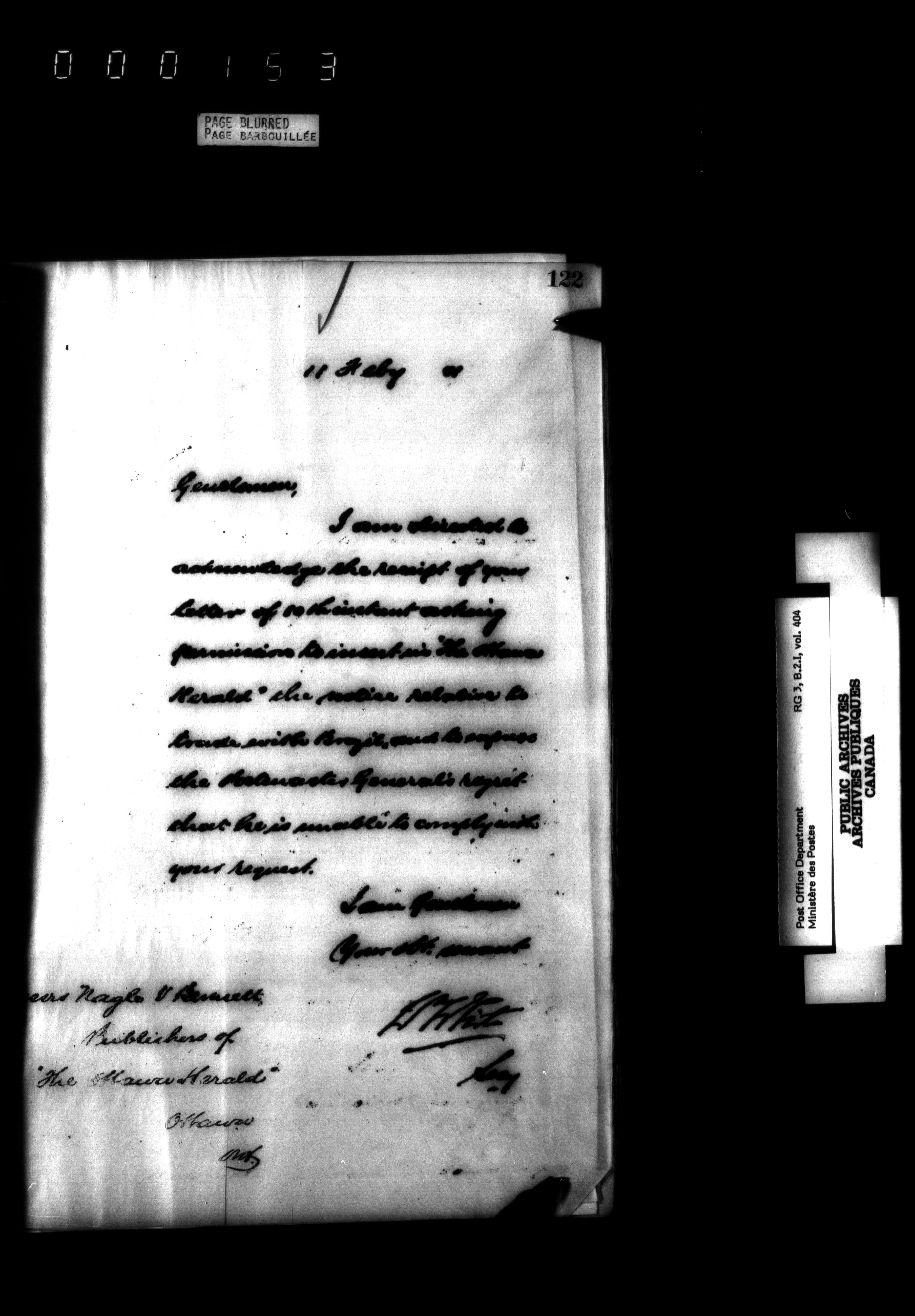 Records and general correspondence sent from the Postmaster General, 1851-1902 - 3877