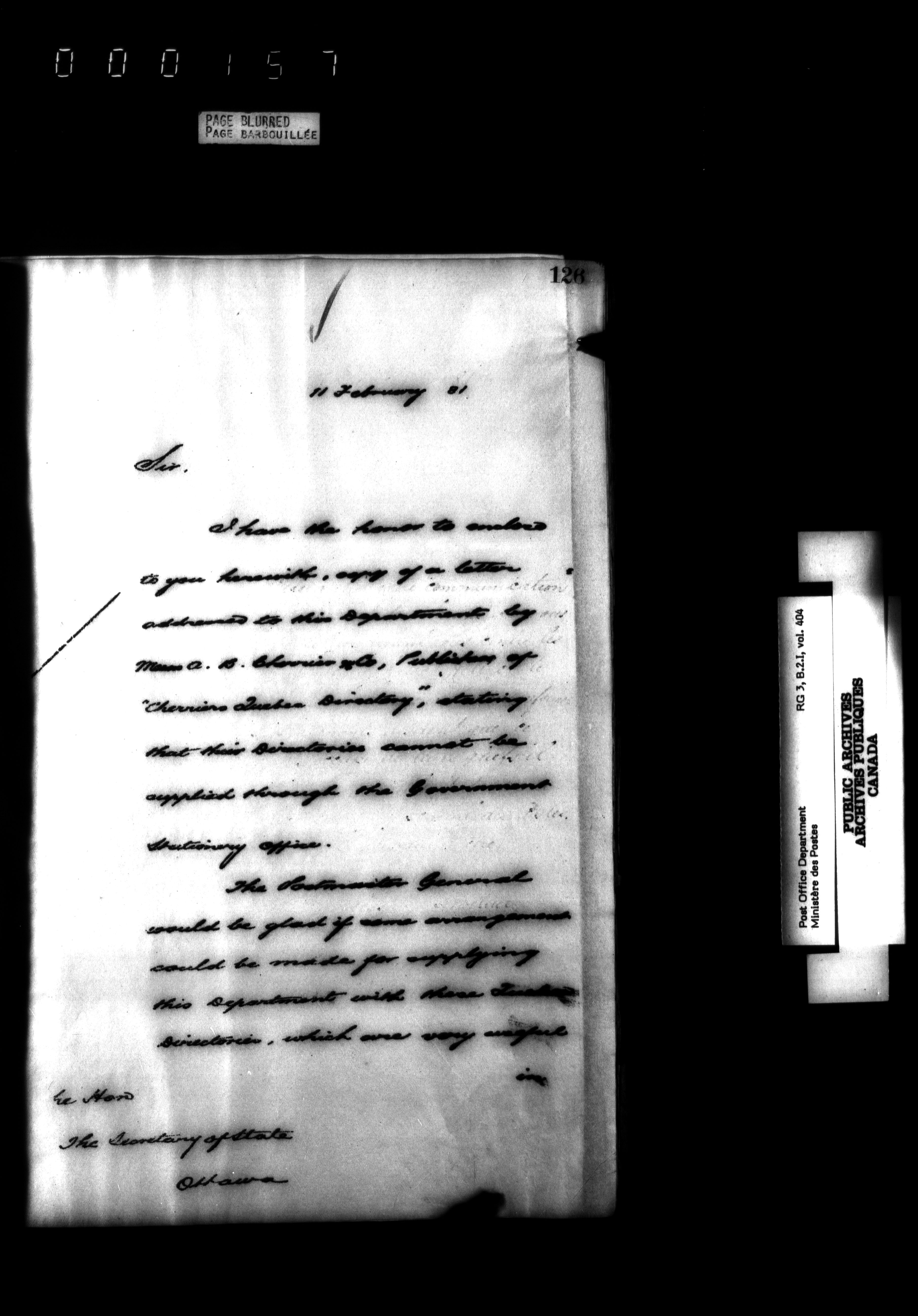 Records and general correspondence sent from the Postmaster General, 1851-1902 - 3877