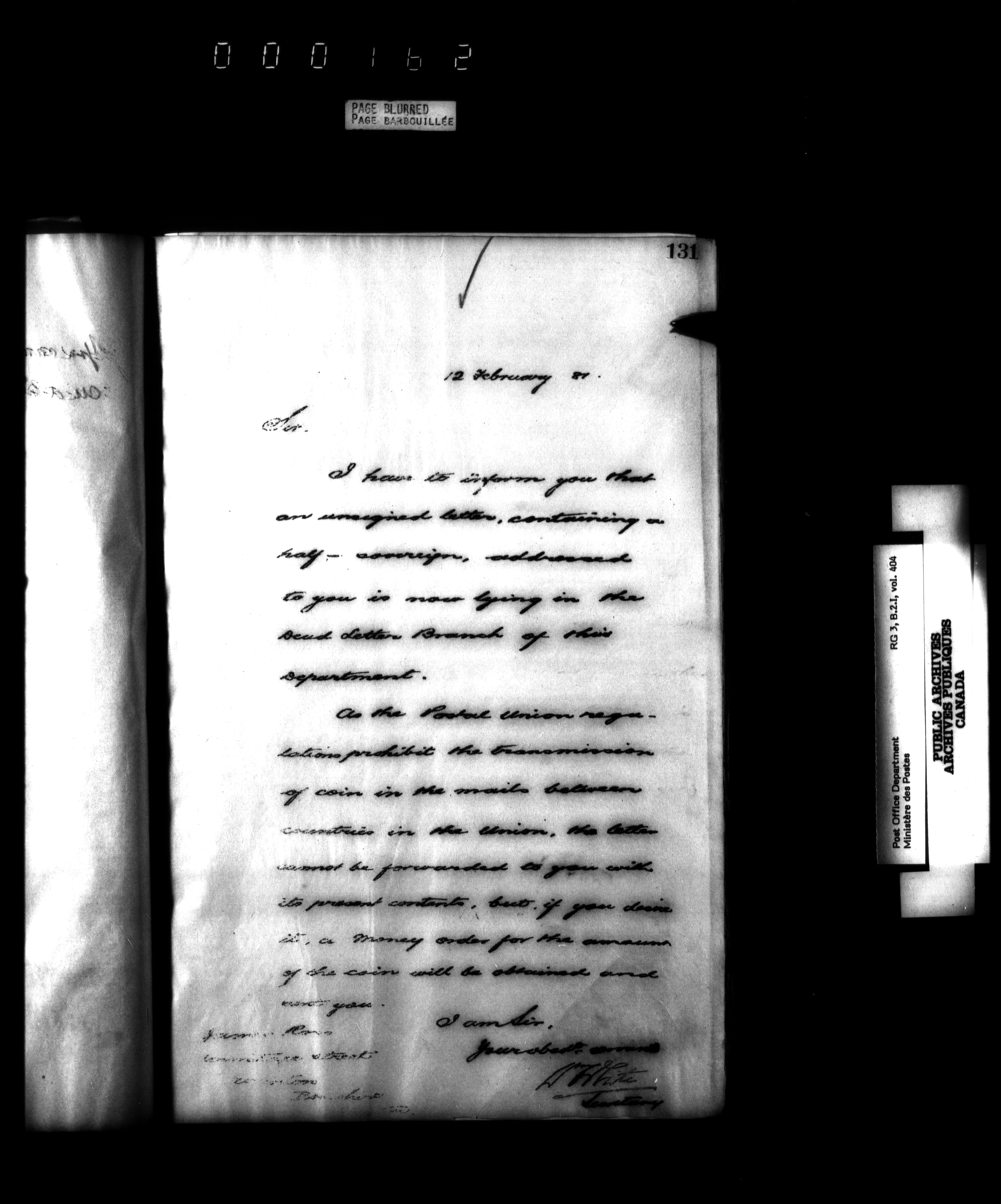 Records and general correspondence sent from the Postmaster General, 1851-1902 - 3877