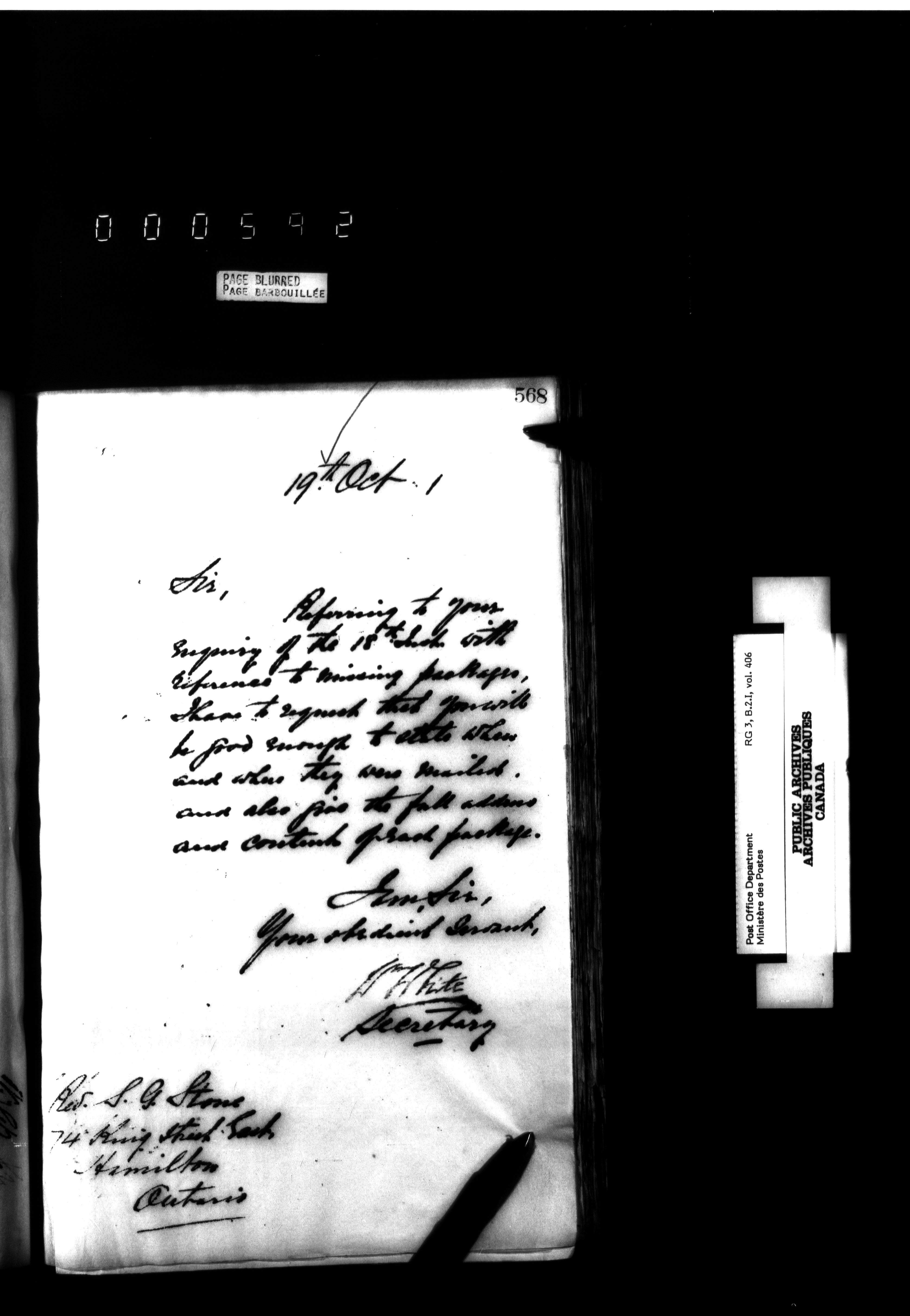 Records and general correspondence sent from the Postmaster General, 1851-1902 - 3879