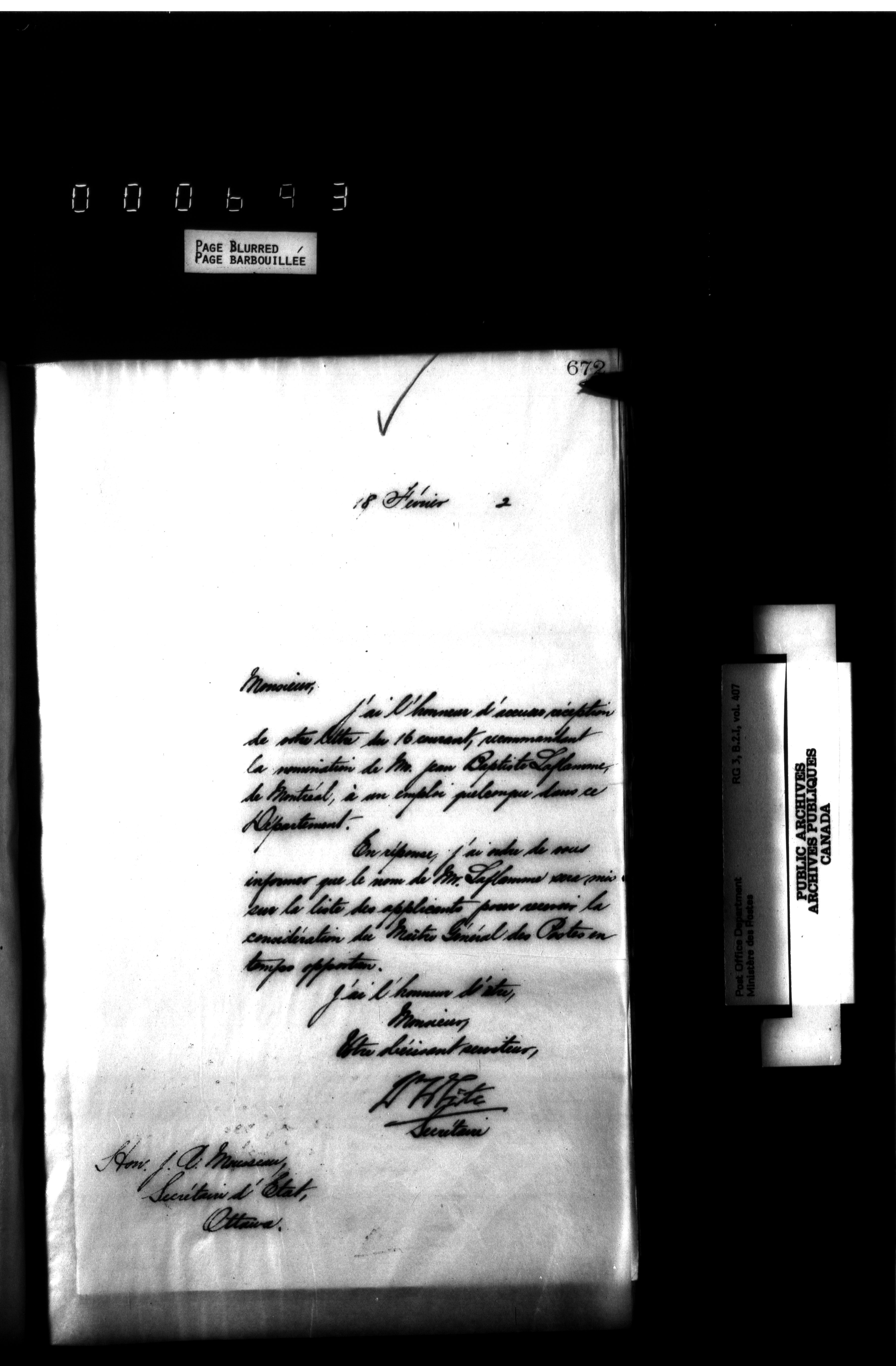Records and general correspondence sent from the Postmaster General, 1851-1902 - 3879