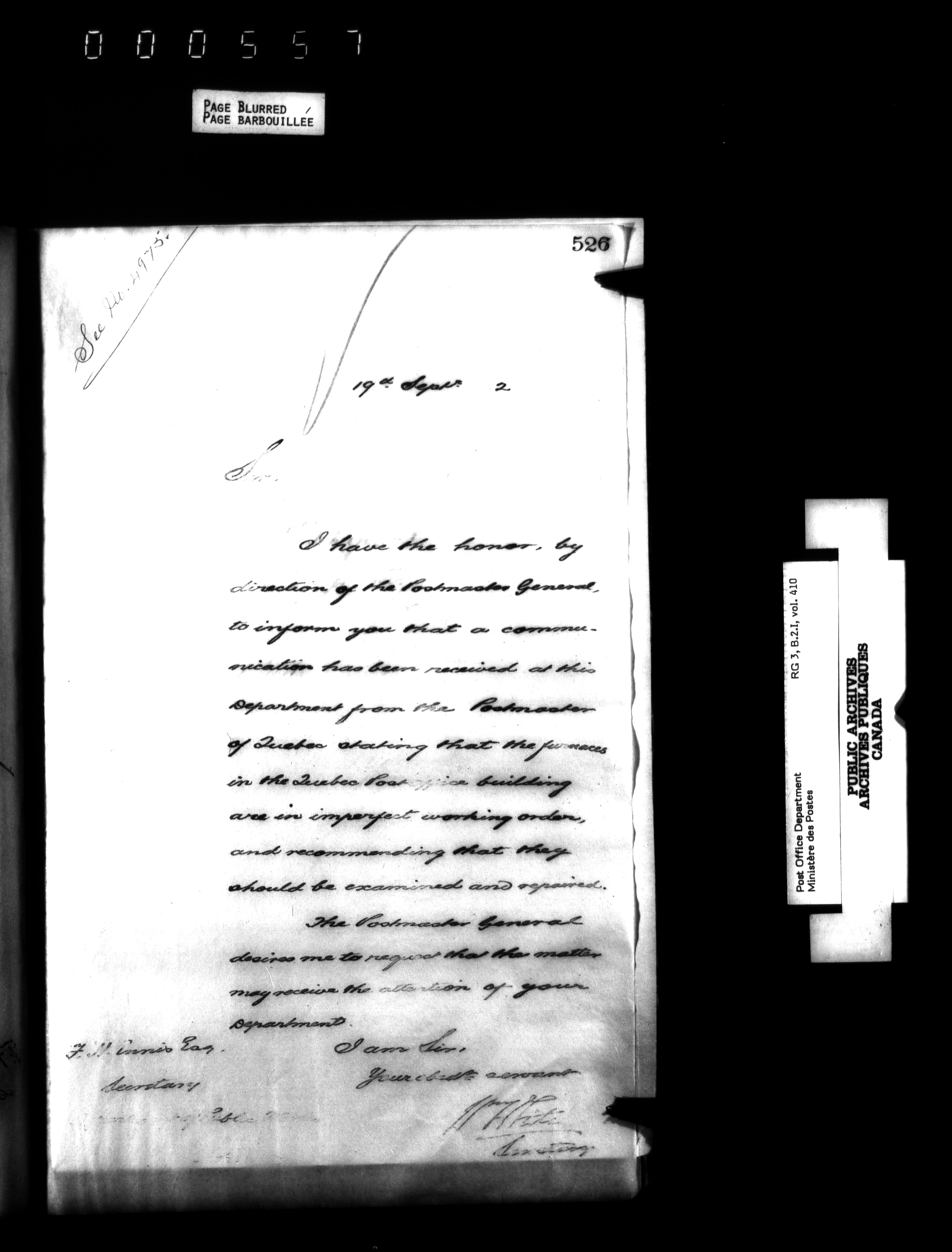 Records and general correspondence sent from the Postmaster General, 1851-1902 - 3881