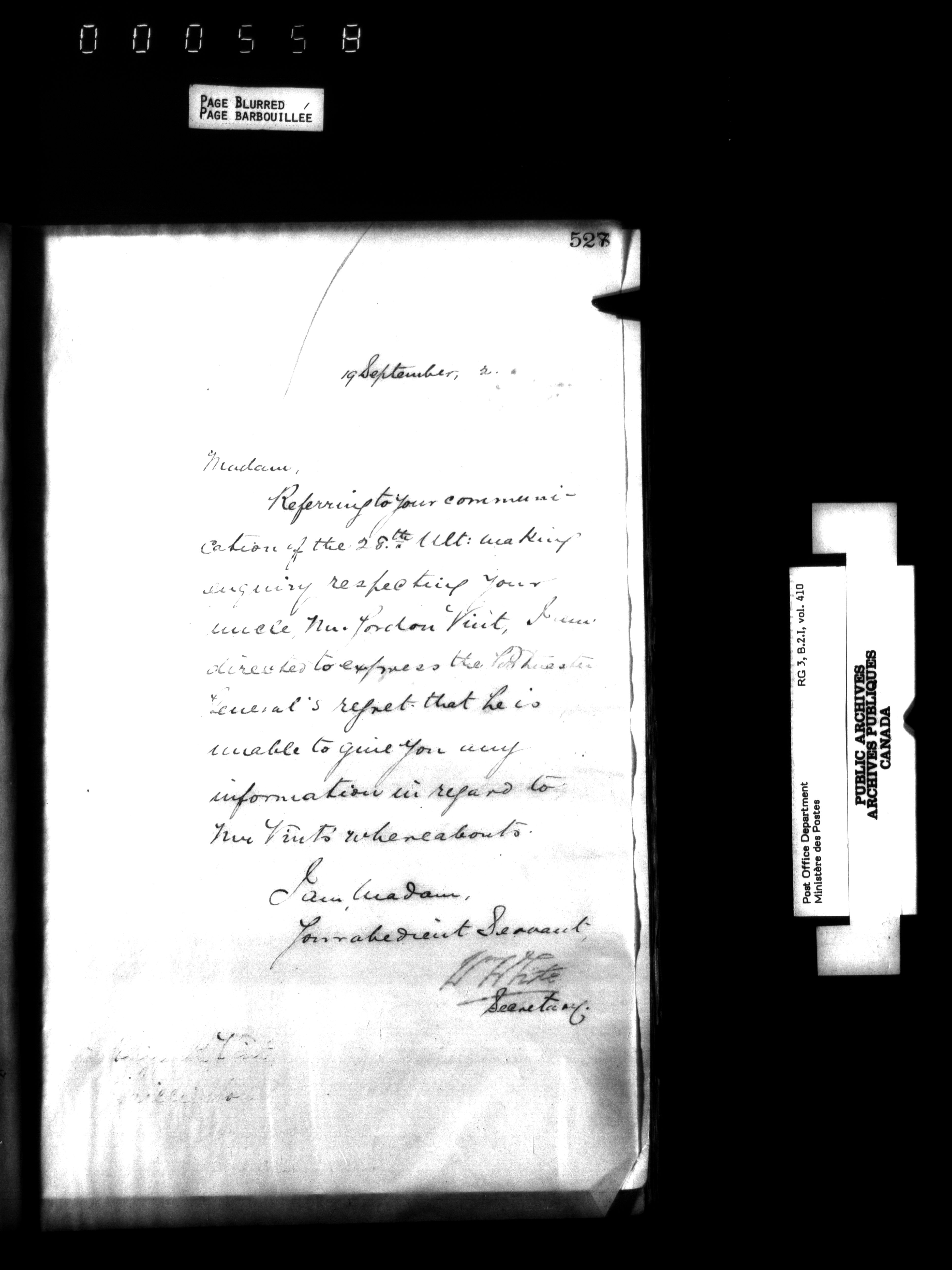 Records and general correspondence sent from the Postmaster General, 1851-1902 - 3881