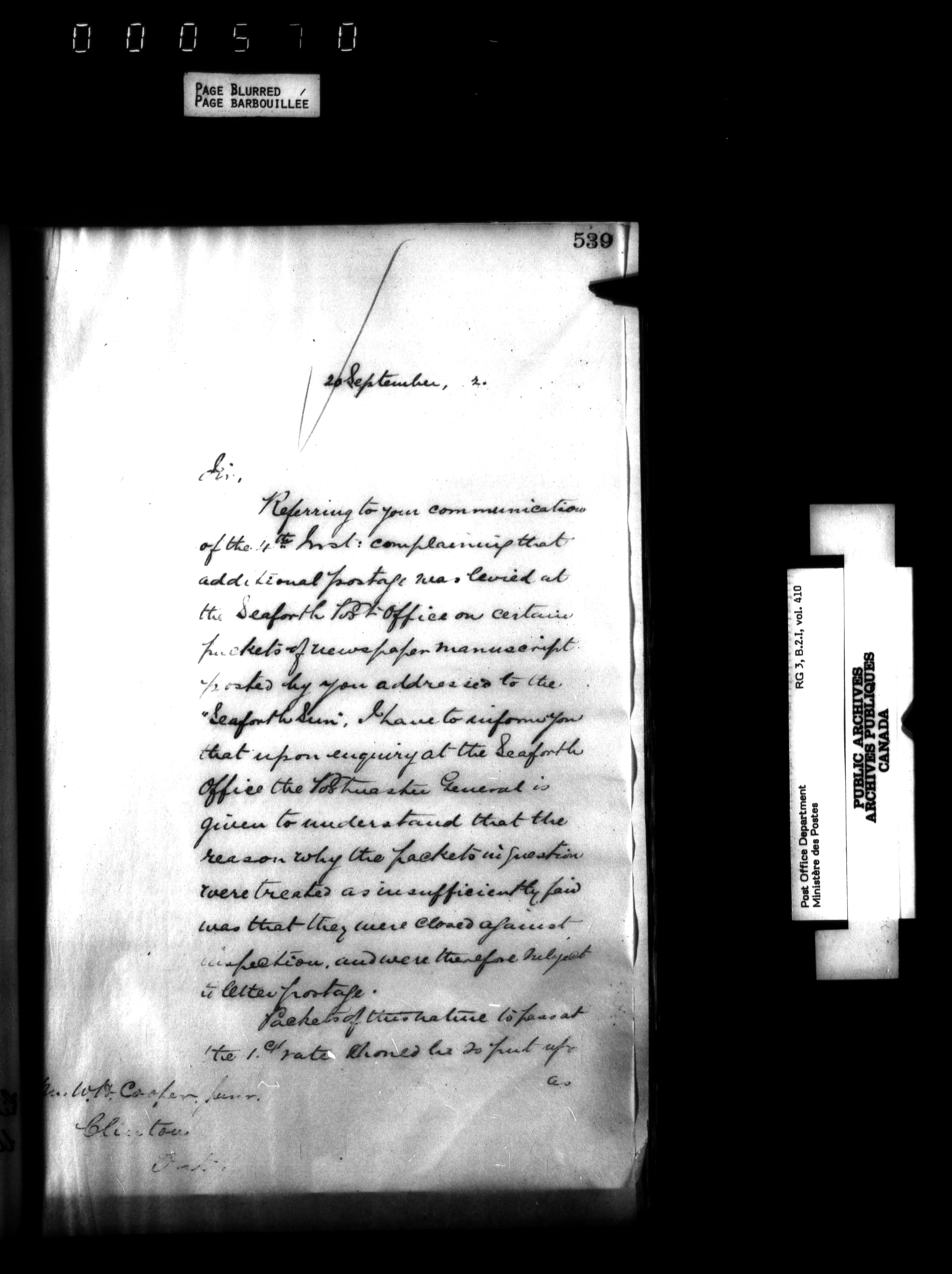 Records and general correspondence sent from the Postmaster General, 1851-1902 - 3881