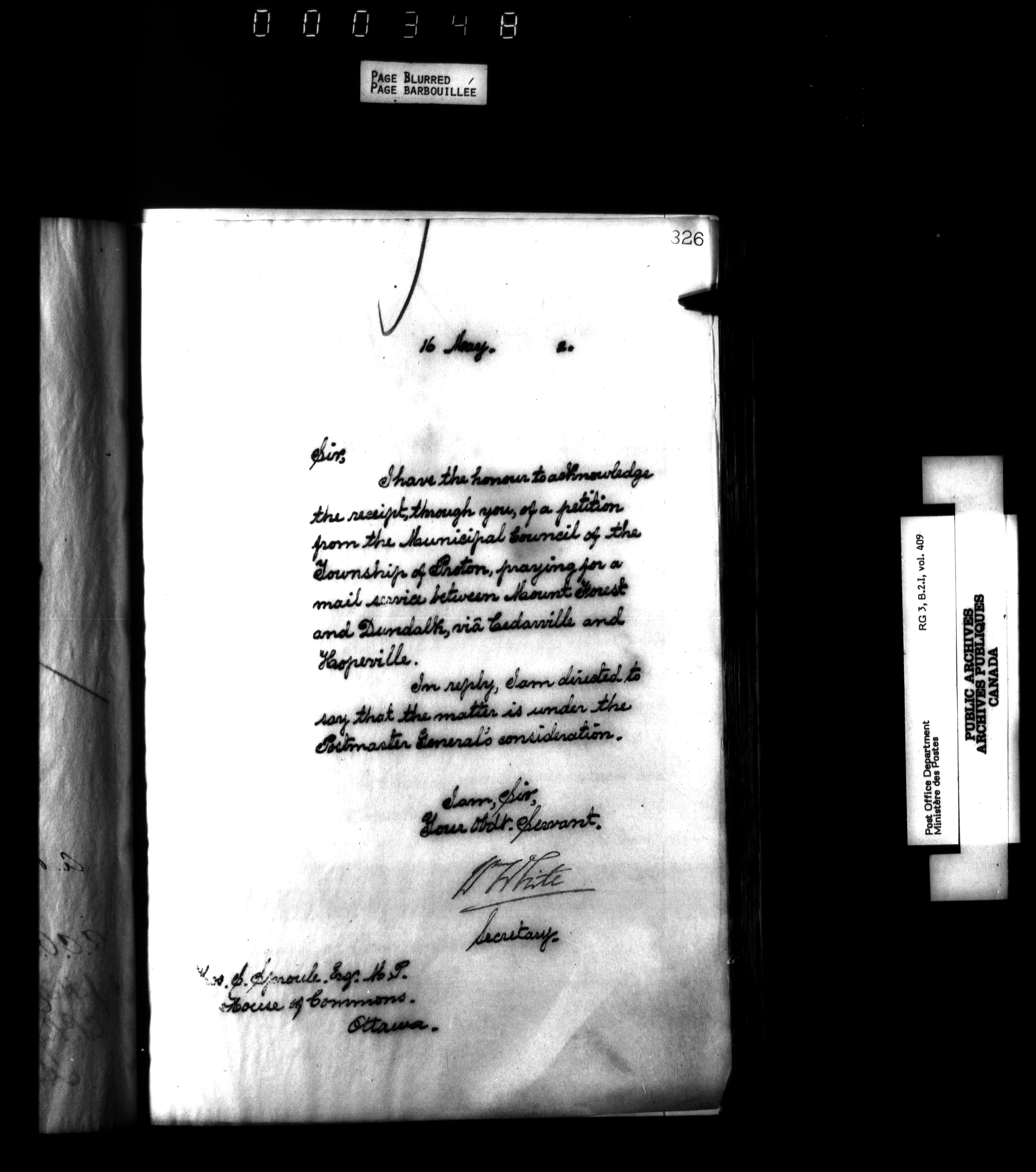 Records and general correspondence sent from the Postmaster General, 1851-1902 - 3881