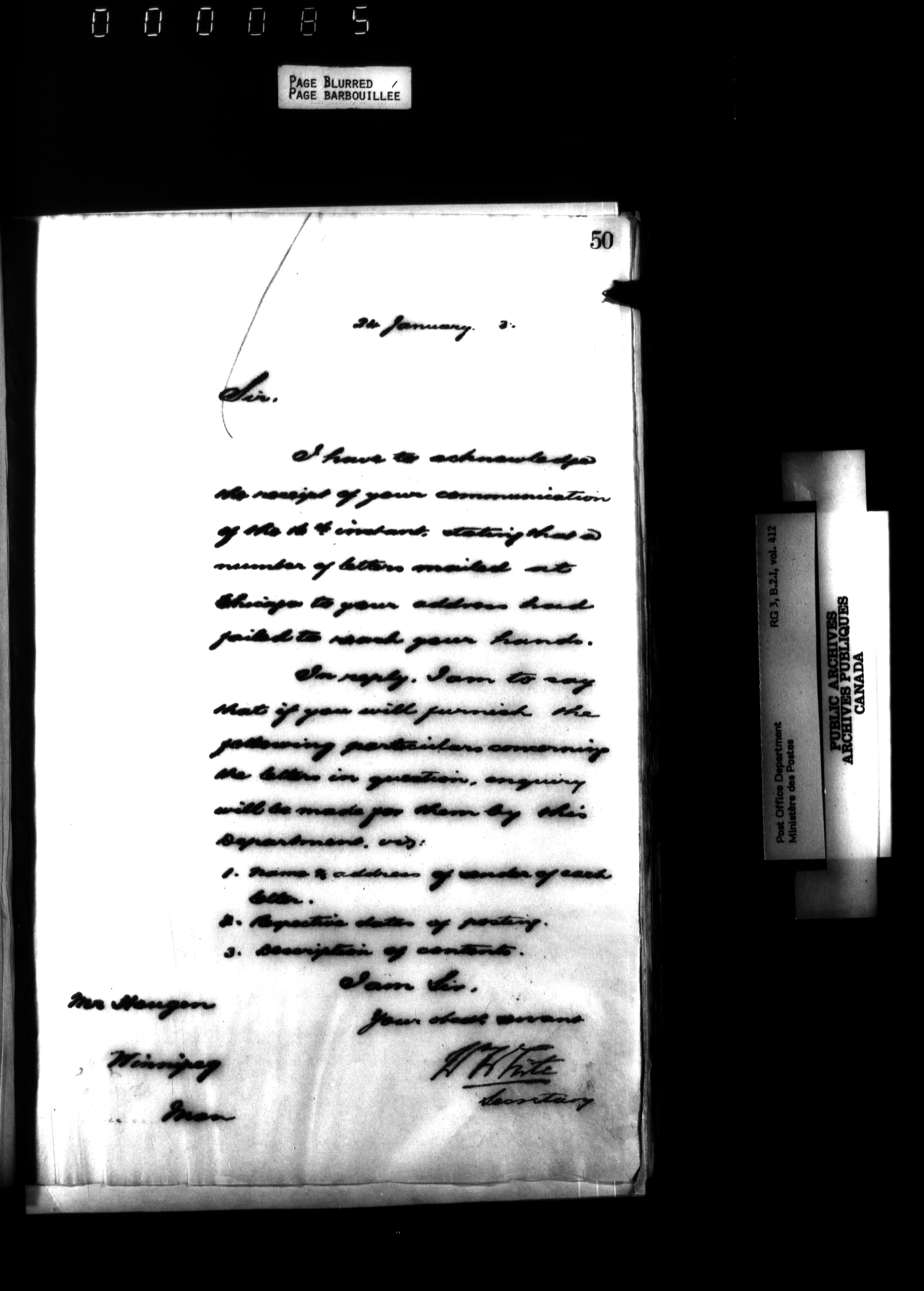 Records and general correspondence sent from the Postmaster General, 1851-1902 - 3882