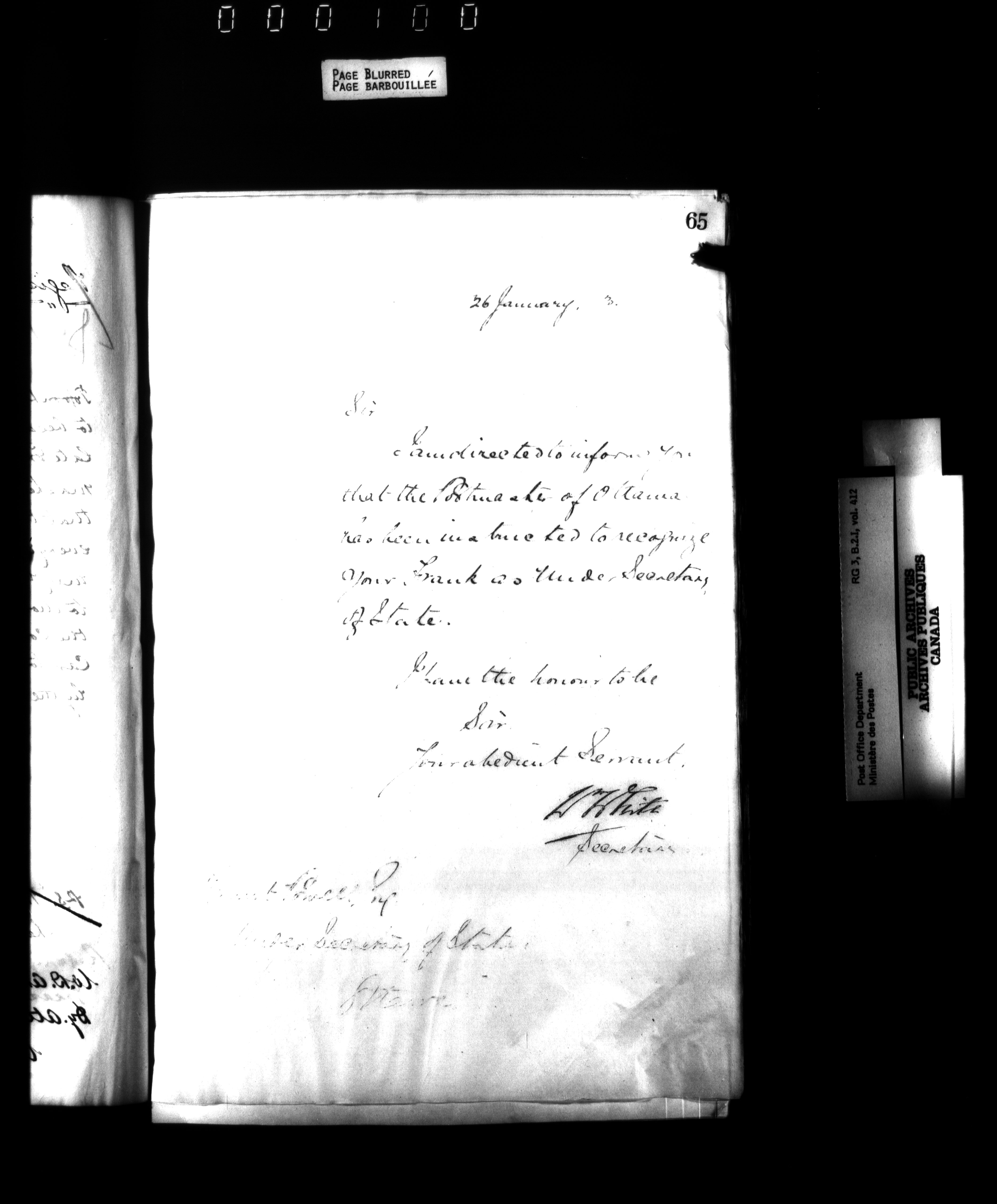 Records and general correspondence sent from the Postmaster General, 1851-1902 - 3882