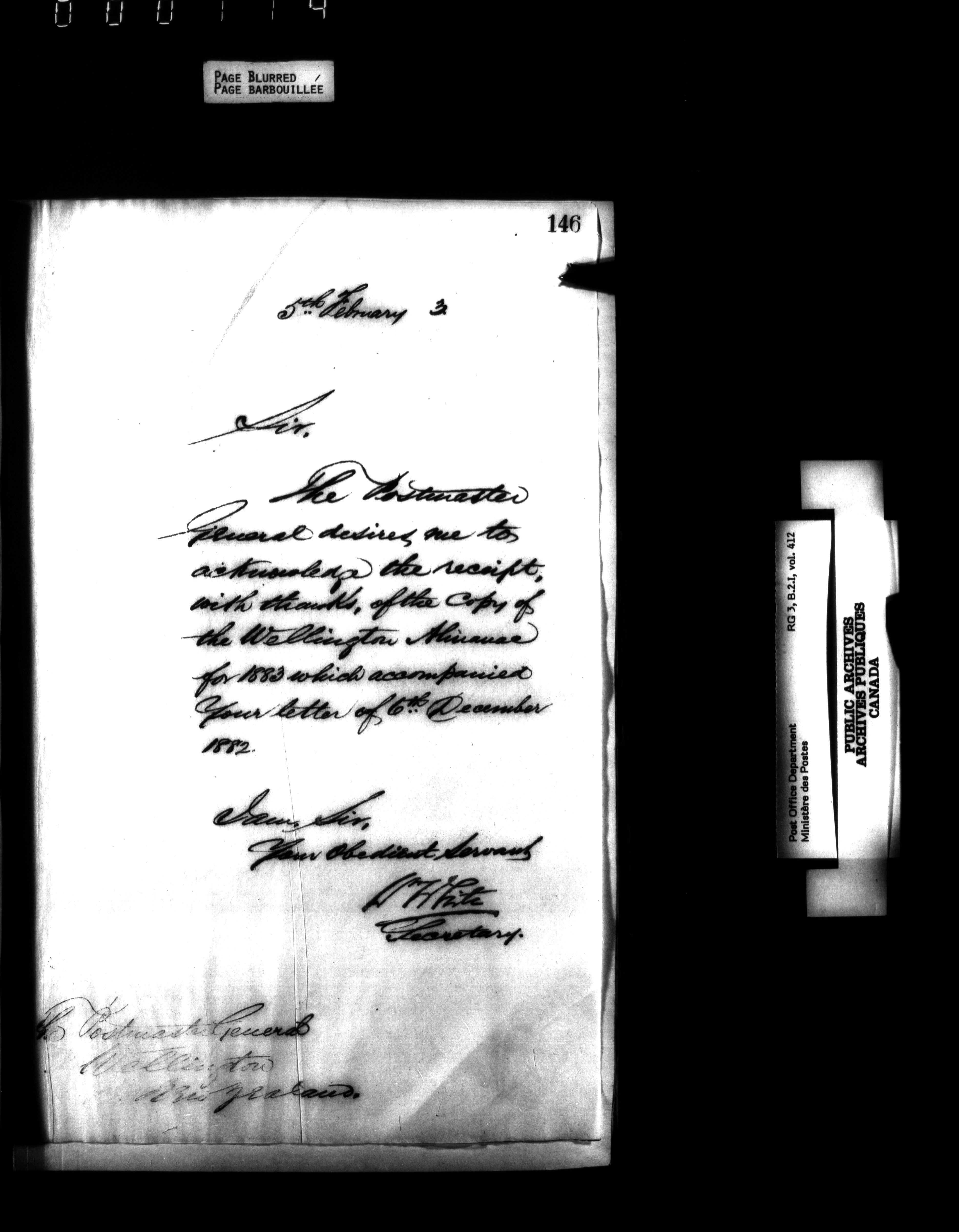 Records and general correspondence sent from the Postmaster General, 1851-1902 - 3883