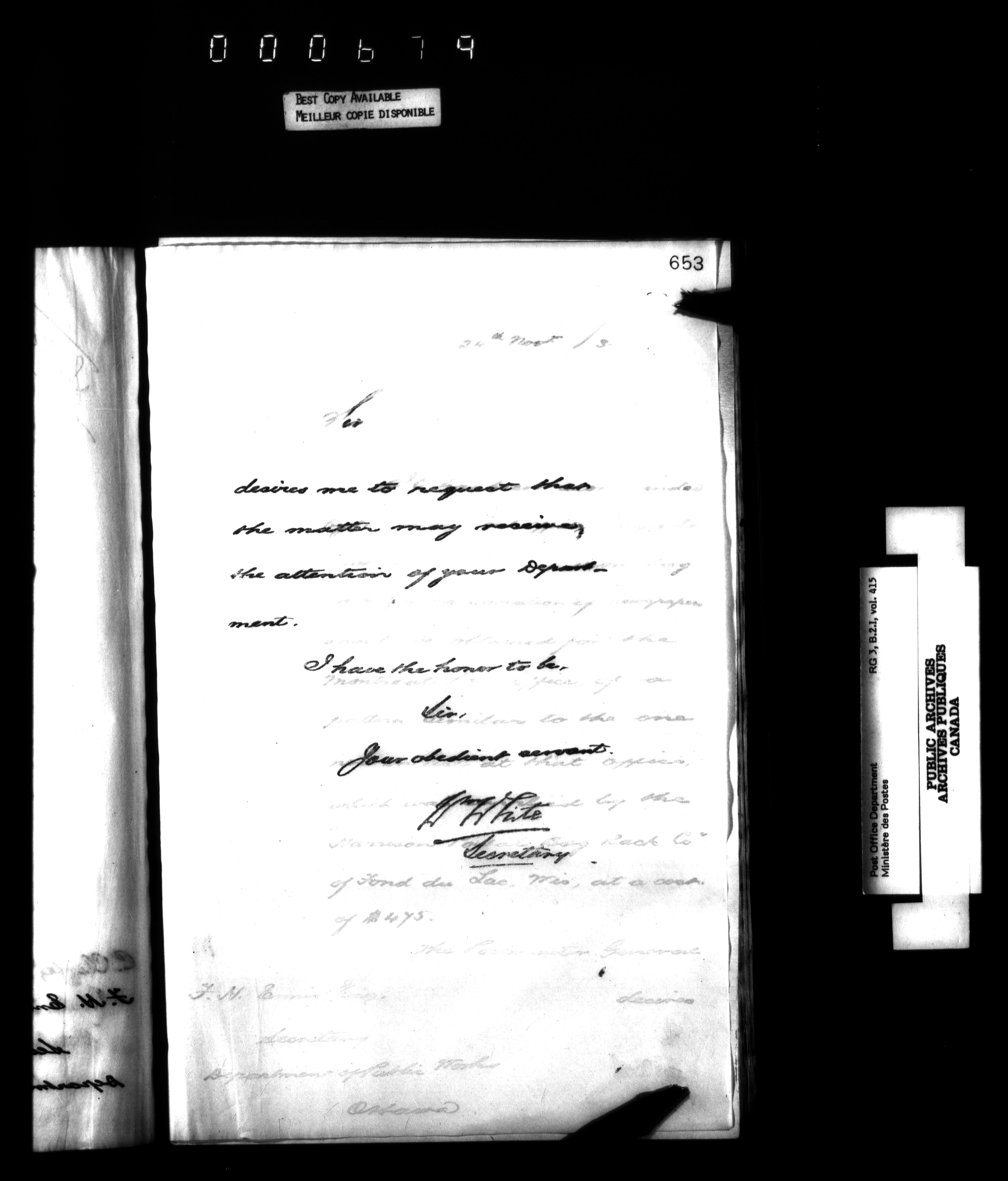 Records and general correspondence sent from the Postmaster General, 1851-1902 - 3885