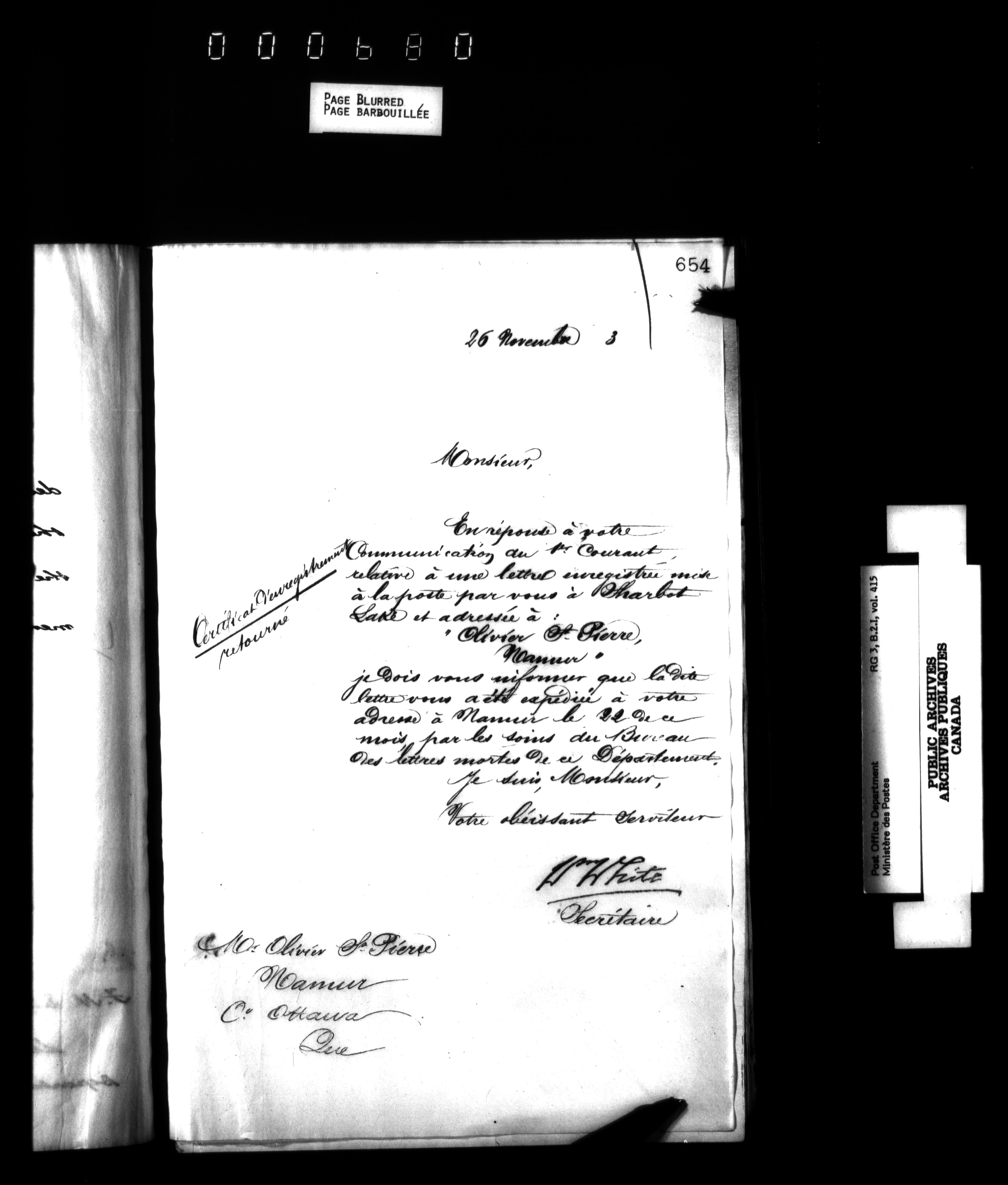 Records and general correspondence sent from the Postmaster General, 1851-1902 - 3885