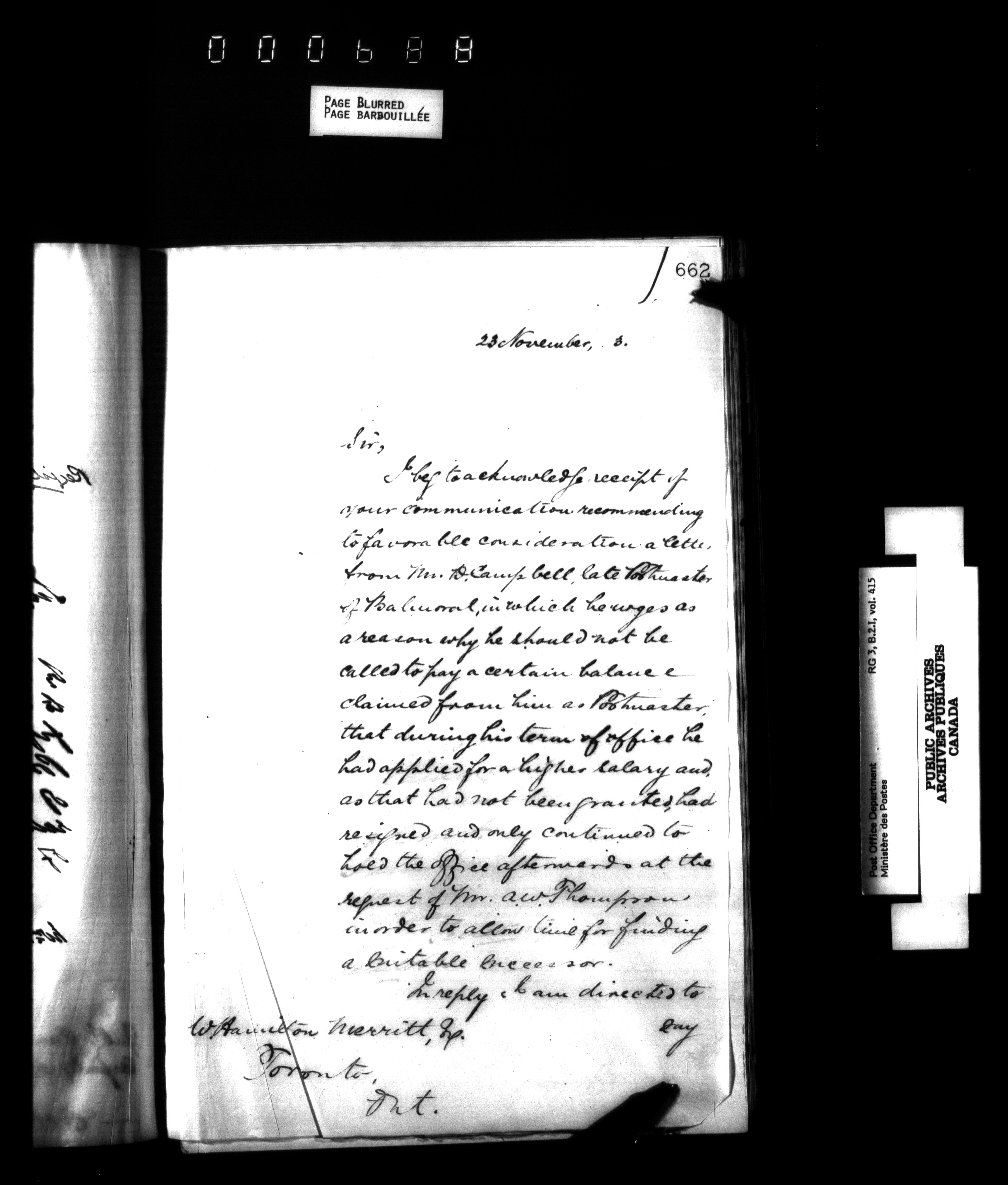 Records and general correspondence sent from the Postmaster General, 1851-1902 - 3885