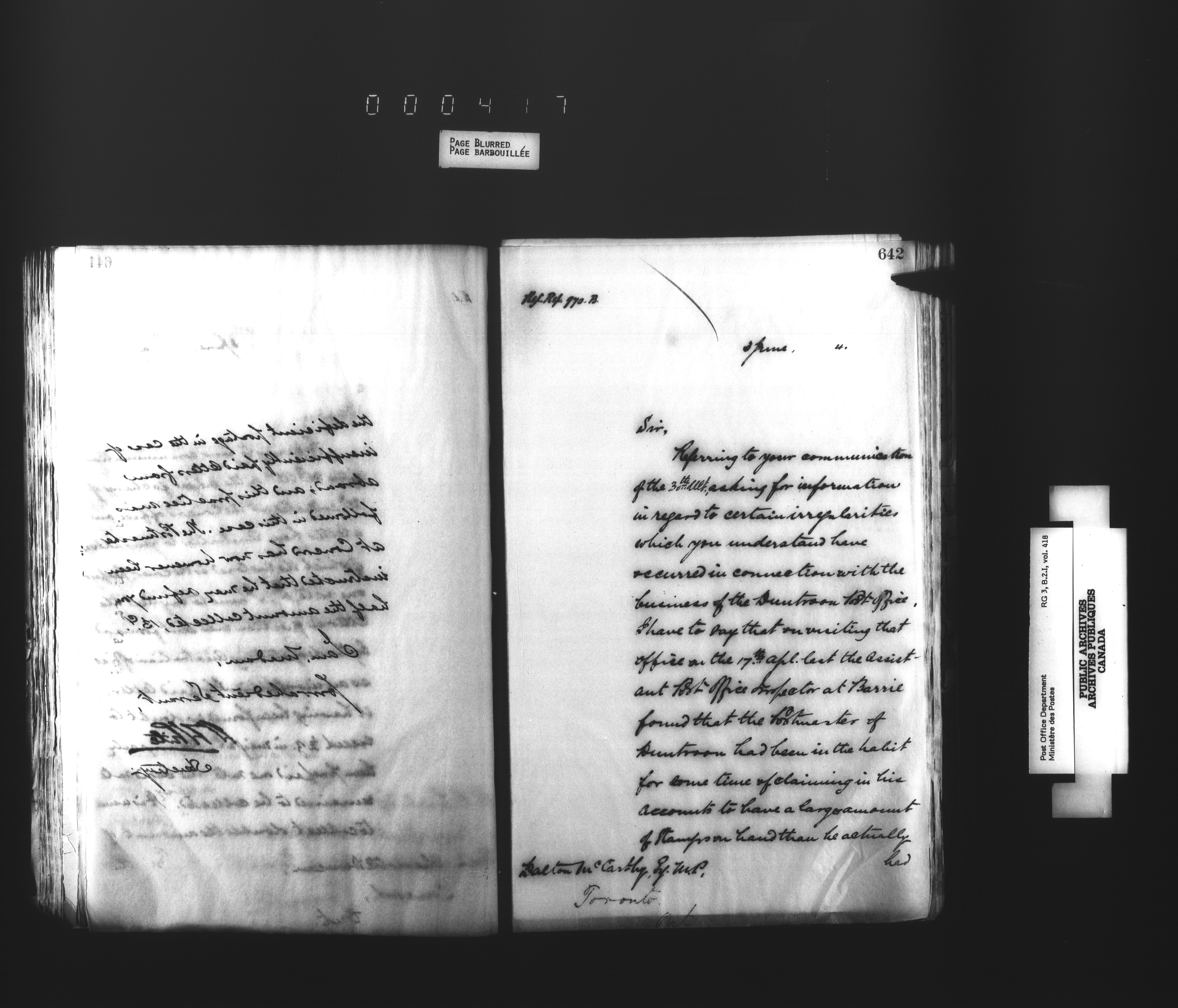 Records and general correspondence sent from the Postmaster General, 1851-1902 - 3888