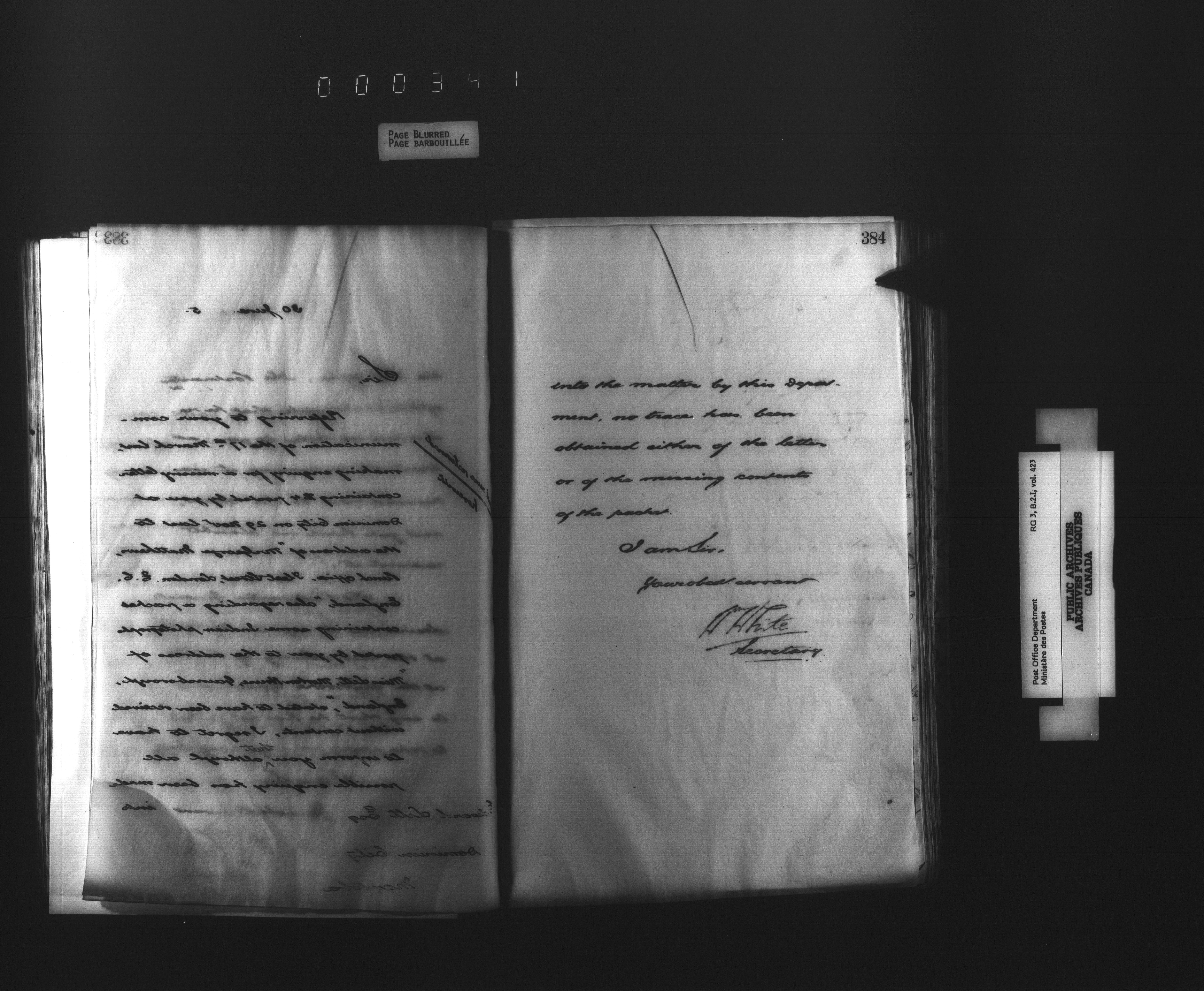 Records and general correspondence sent from the Postmaster General, 1851-1902 - 3892