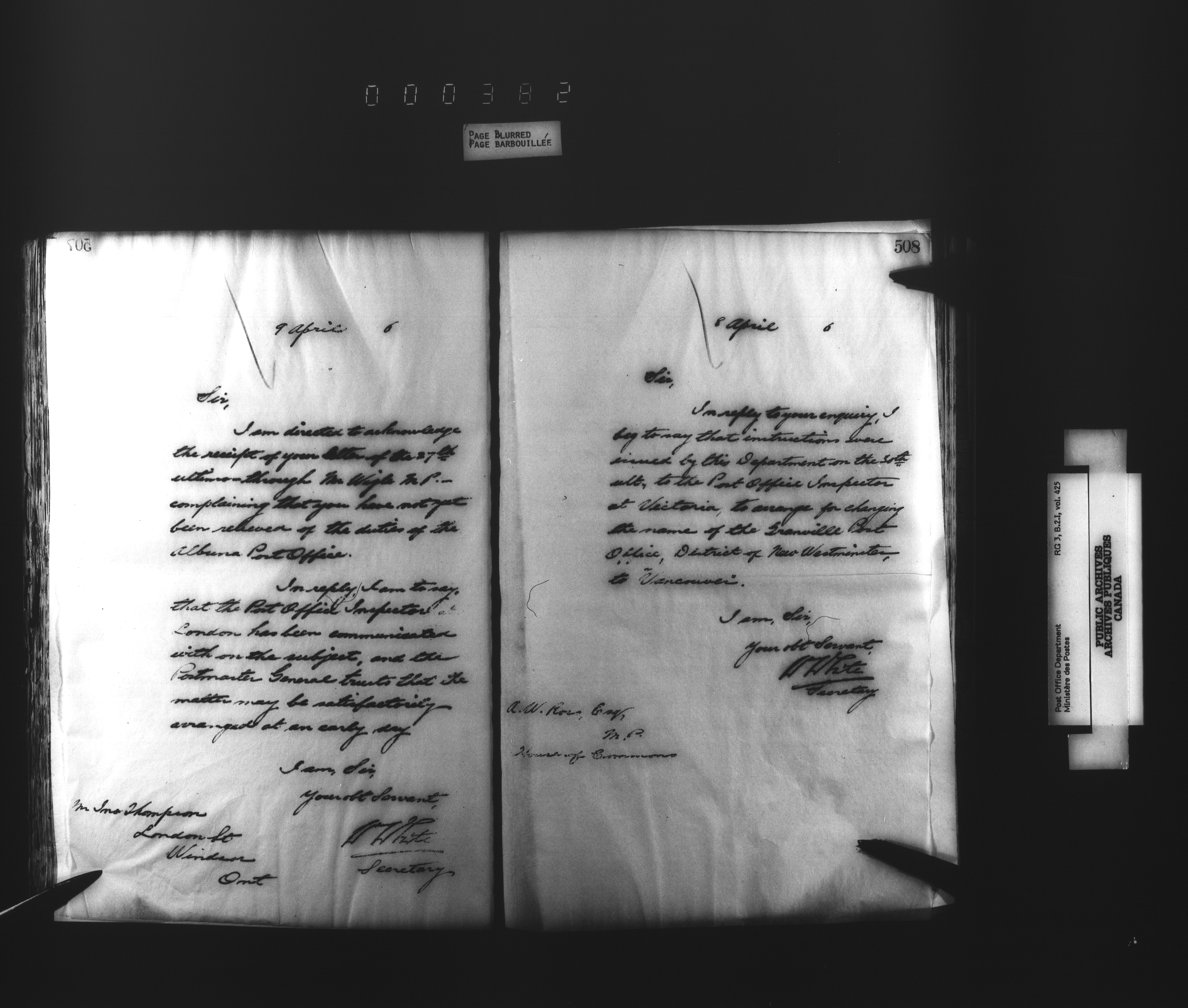 Records and general correspondence sent from the Postmaster General, 1851-1902 - 3894